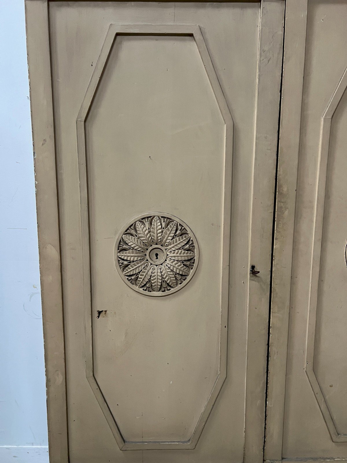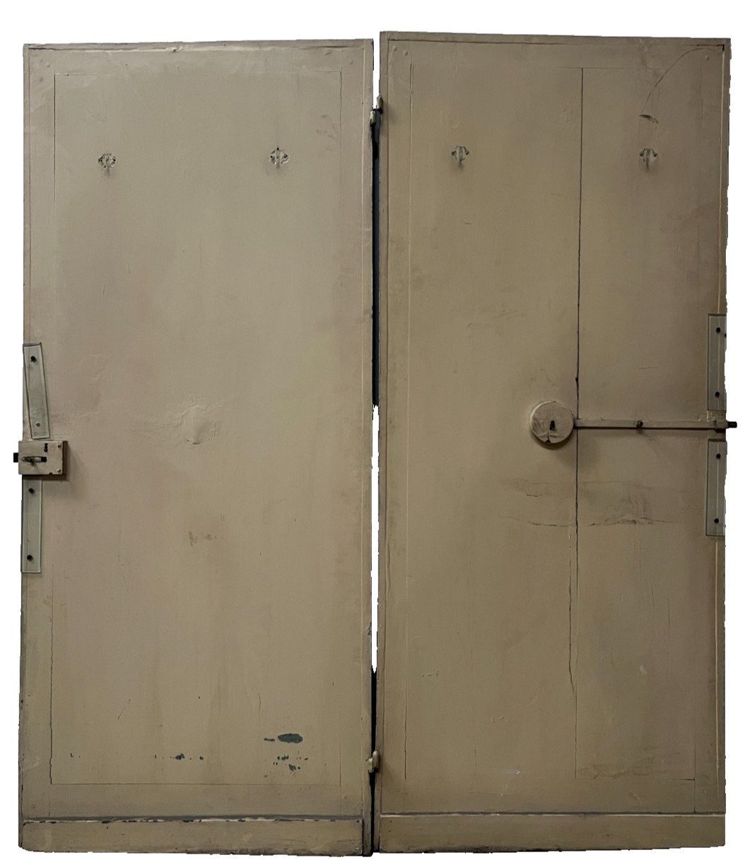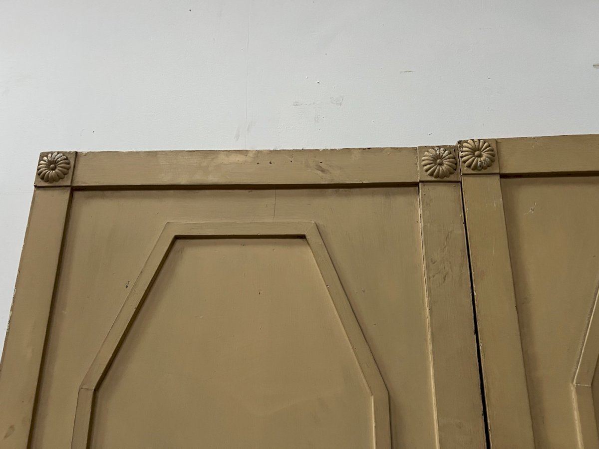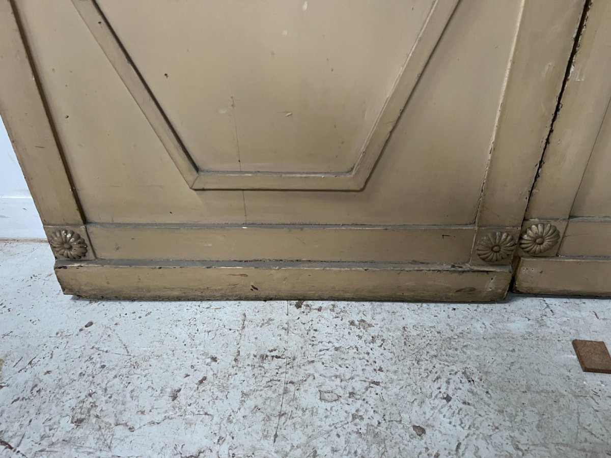 Pair of single-faced patina wood doors One face with molding and central rosette Good condition Dimensions H 200 x W 88 x D 3 cm 19th century Type: Door Period: 19th century and earlier Country of origin: France Height: 200 Material: Wood Length: 88 Width: 3