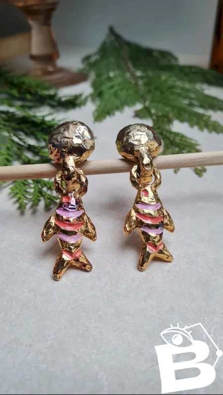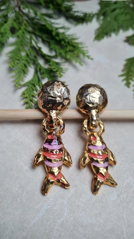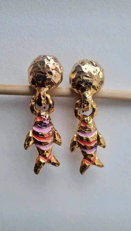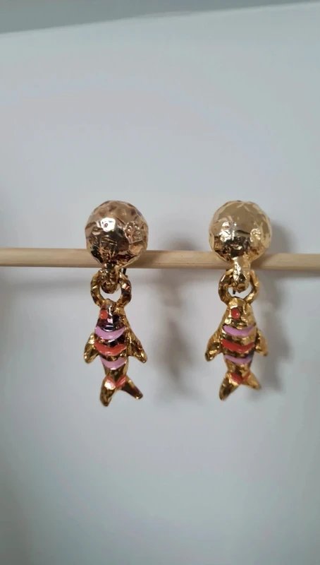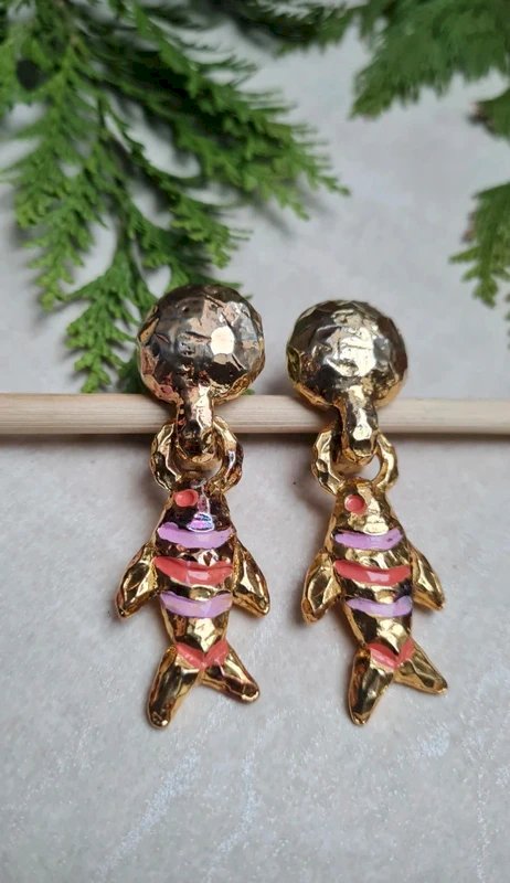 Above €25, please choose a carrier if possible. Take the opportunity to buy in bulk: - 5 items - 10% - 10 items - 20% - 20 items - 30%. Be sure to check the pictures for imperfections. Dimensions: width: 1.8 cm, height: 6 cm. #earrings #gift #chic #collection #vintage #jewelry #clips #paris #earringsparis #fishearrings #vintageclips #fish #fishjewelry