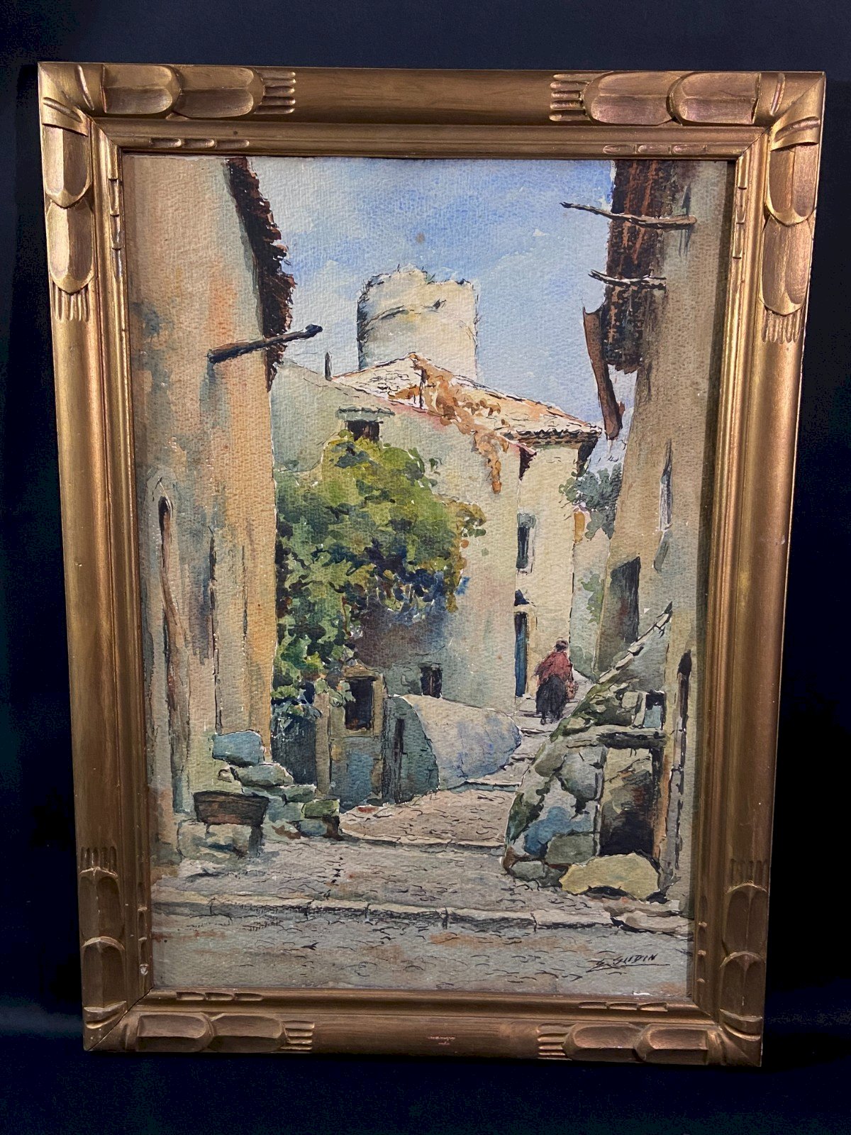 Signed painting, early 20th-century watercolor, depicting a lively alley landscape of a village in Provence. Maximum dimensions with frame: 64.5 x 46.7 cm. Total weight: 1119 grams. Very good condition. Ultra-secure shipping worldwide - Order pickup available by appointment, 7 rue Notre-Dame 18000 Bourges. - Possibility of grouping in the same package: please contact me beforehand so I can calculate your optimized shipping costs. Type: Watercolor Country of origin: France Features: Framed, Signed Theme: Landscape