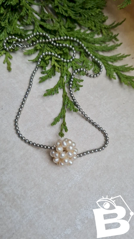 Necklace - choker in silver and cultured pearl ball