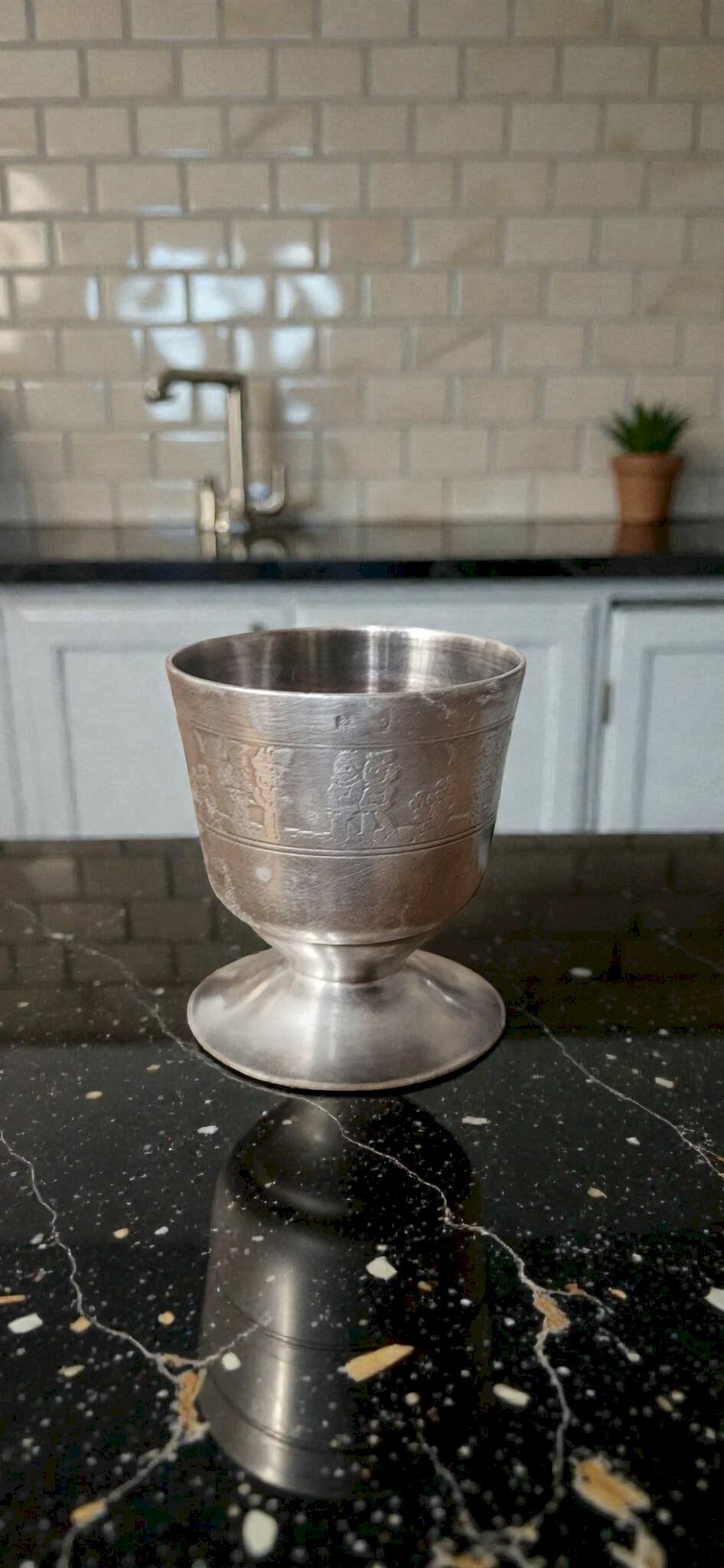 Silver-plated egg cup Height 4.8 cm Diameter 4.3 cm In good condition / Careful packaging and fast delivery. L: 4.3 W: 4.3 H: 4.8