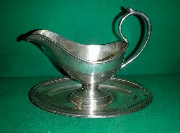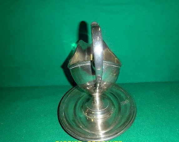 superb silver-plated sauceboat Metallonide CAILAR BAYARD, the Metallonide is the specialty of this silversmith. Additionally, you can see the hallmark bearing the initials C B with an 8-petal flower, which is the Cailar Bayard hallmark. It is in very good condition, there is just a bit of tarnish inside and the silver plating is a little worn. It is monogrammed R.M and measures 20 cm high, 27 cm wide, and 17.3 cm deep. Type: Tableware, Kitchen. Sub-type: Sauceboat. Material: Silver-plated metal.