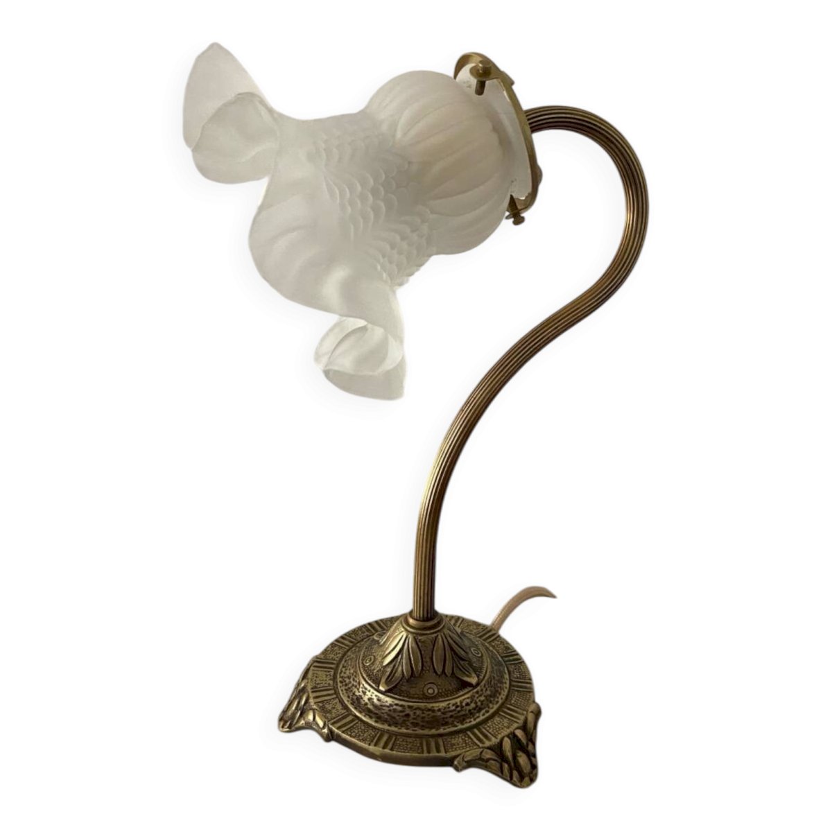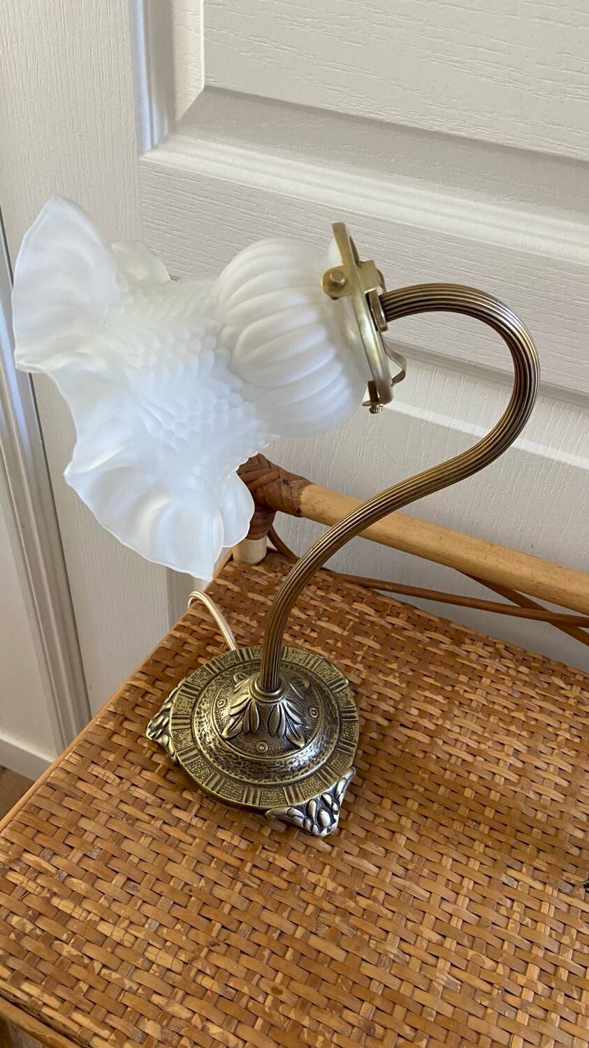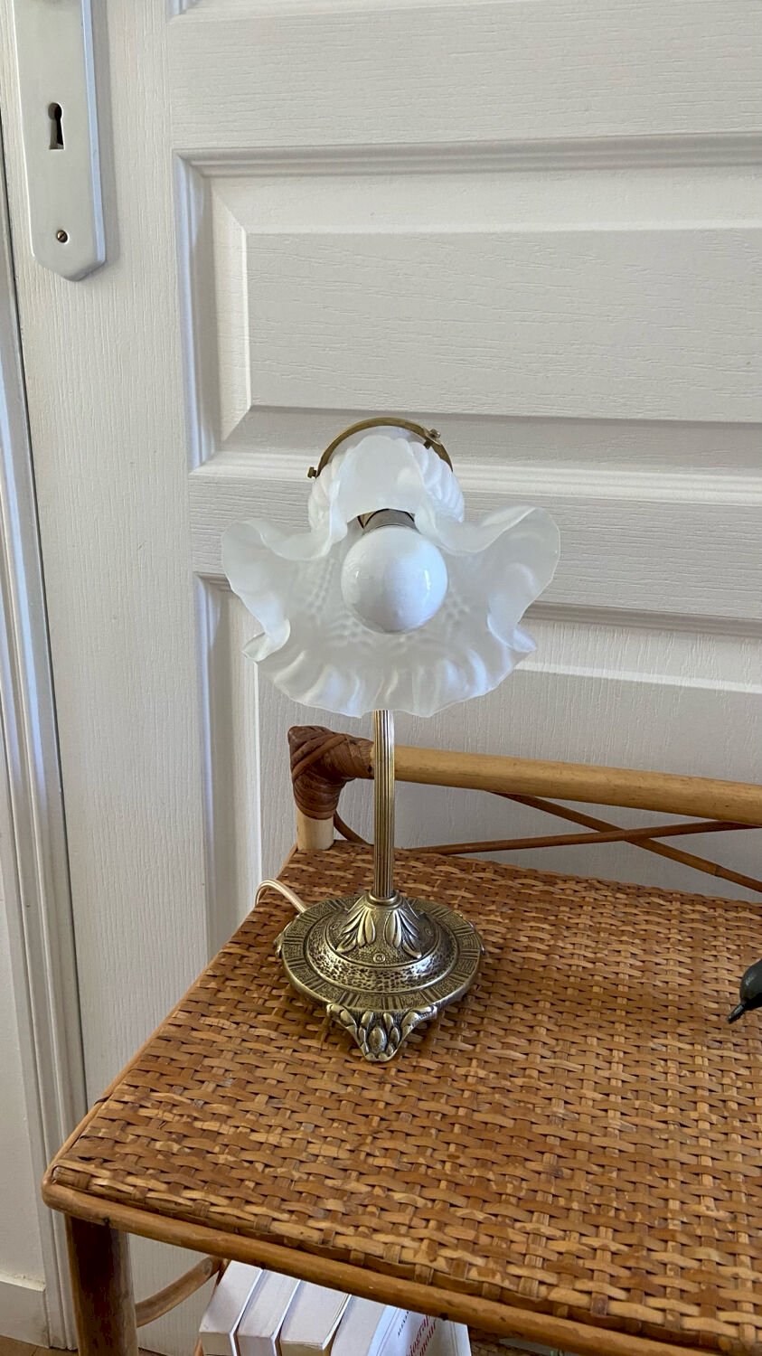 The electrical system is new, with a cord switch and plug. Ideally suited as a bedside lamp, desk lamp, or simply placed on a piece of furniture. The base is weighted to prevent the lamp from tipping over. Height 29 cm x width 16 cm x length 20 cm. Weight 0.8 kg. L: 16 W: 20 H: 29