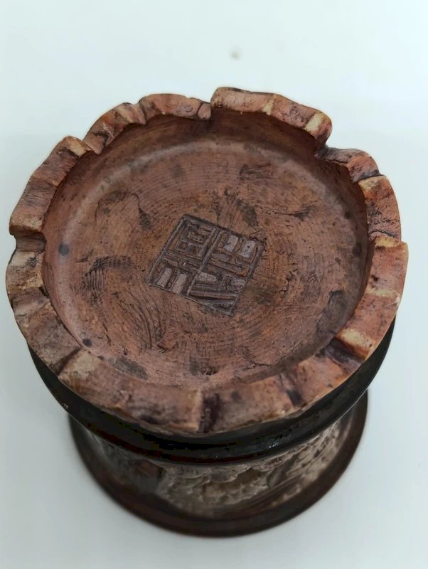 small Asian incense burner made of pierced stone with black and gold patina in good condition, beautiful model nicely decorated, just one or two small chips (see photos) height 7cm