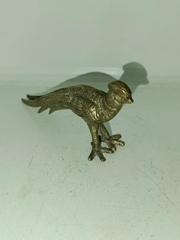 Small bronze sculpture with a dog holding a pheasant, late 19th-early 20th century, in good condition