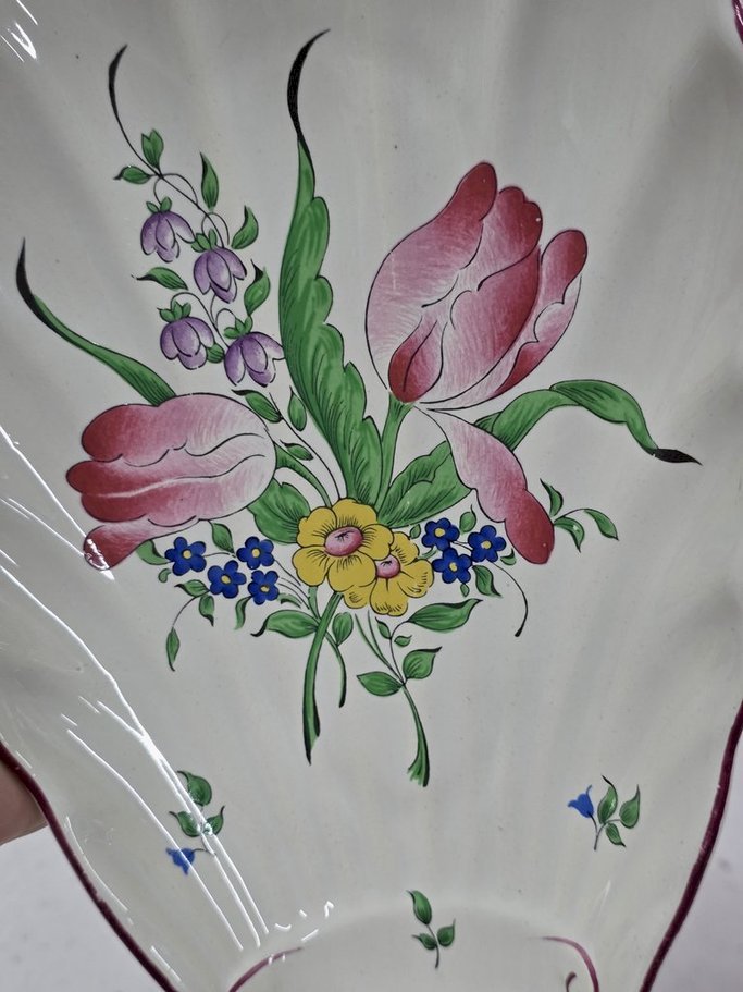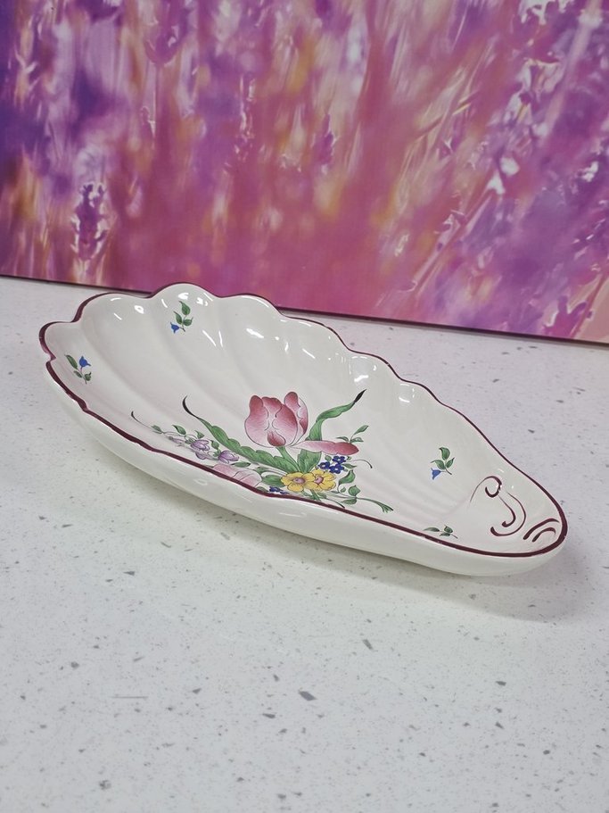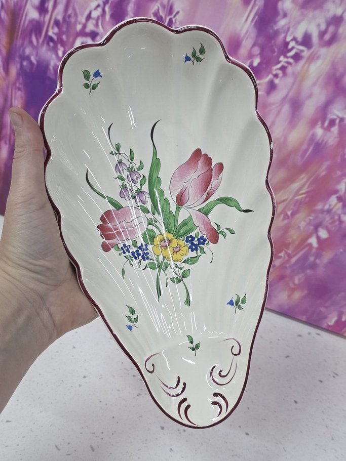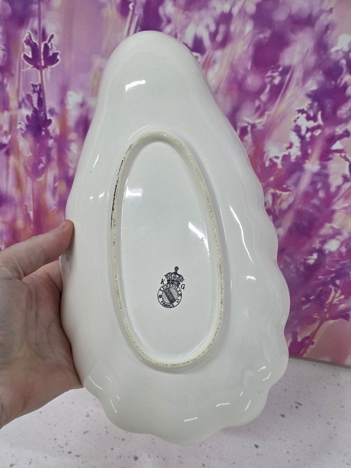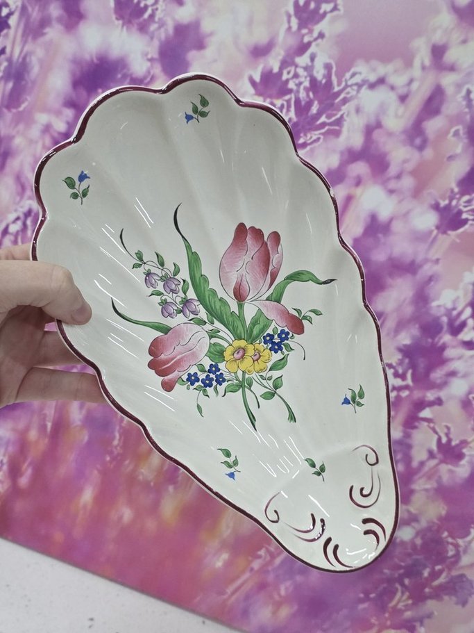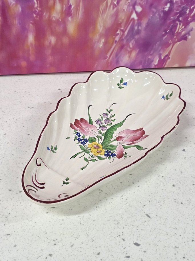 small shell-shaped dish in pottery, KG Lunéville lantern pattern, in very good condition with just a small chip, see photo, length 27cm, width 14cm