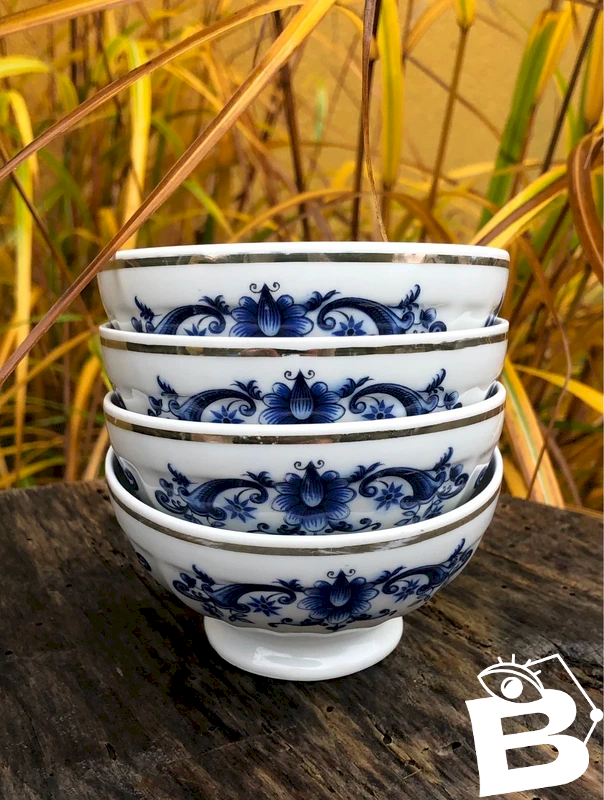 4 Small porcelain bowls from Limoges with blue flower patterns in excellent condition. Height 5 cm Diameter 9.5 cm