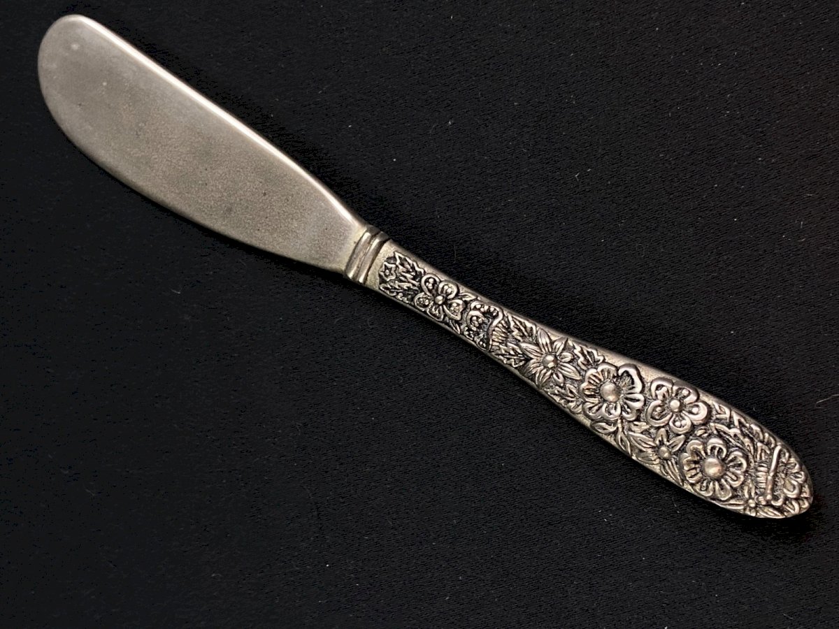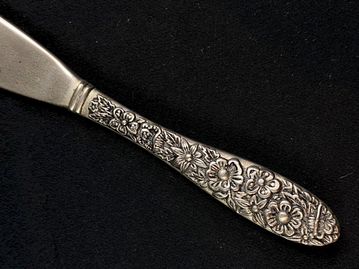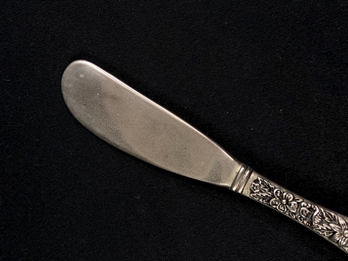 Small metal butter knife with floral decoration Maximum dimensions: 13.7 x 2 cm Weight: 35 grams I note surface wear on the blade. Ultra-secure shipping worldwide - Order pickup available by appointment at 7 rue Notre-Dame, 18000 Bourges. - Grouping in the same package is possible: please contact me beforehand so that I can calculate your optimized shipping costs. Authenticity: Original Type: Tableware, Kitchen Origin: France Period: 20th Century Design Country of origin: France Subtype: Knife Material: Silver-plated metal