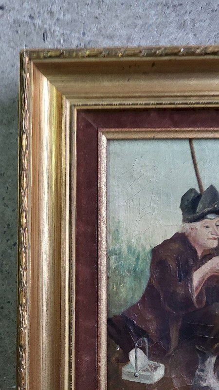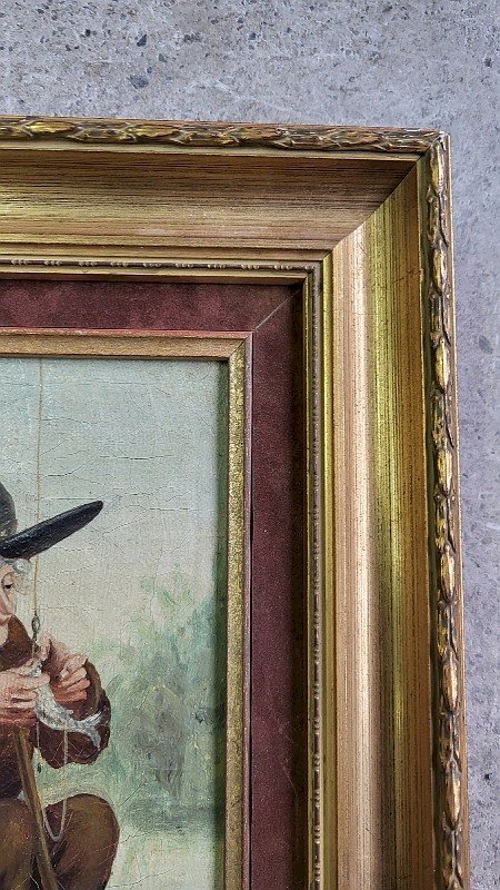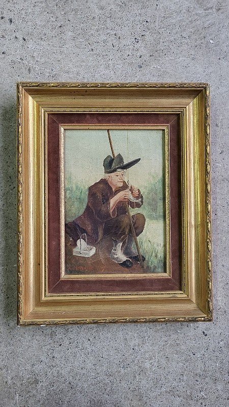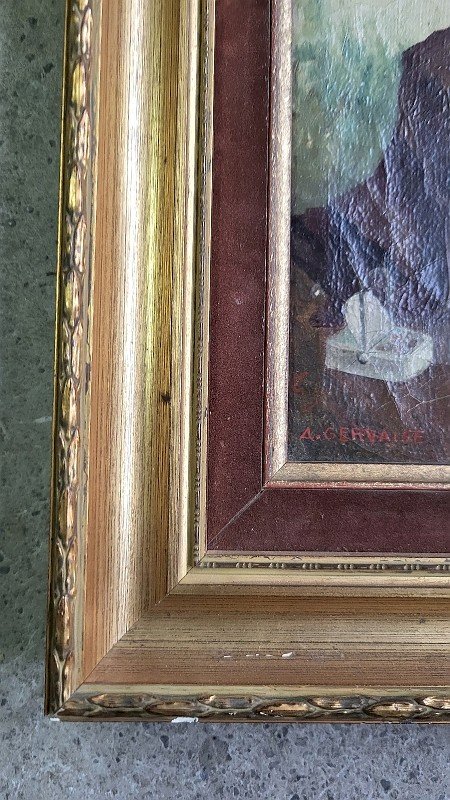 superb small oil painting on canvas representing a fisherman signed A. Gervaise it is in good condition it just has a few small cracks (see photo) the frame and mat are recent it has a very nice subject the frame measures 25 cm wide by 31 cm high the painting measures 15 cm wide by 21 cm high Type: Oil Country of origin: Metropolitan France Features: Signed, On canvas Theme: Character