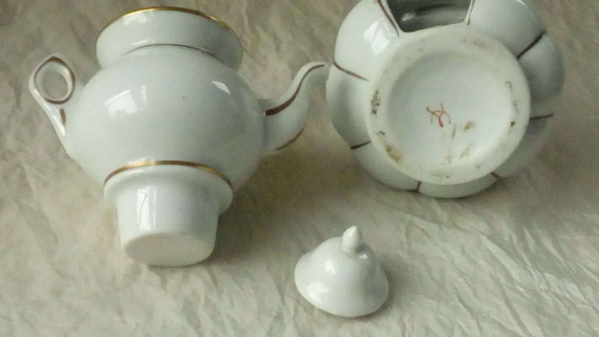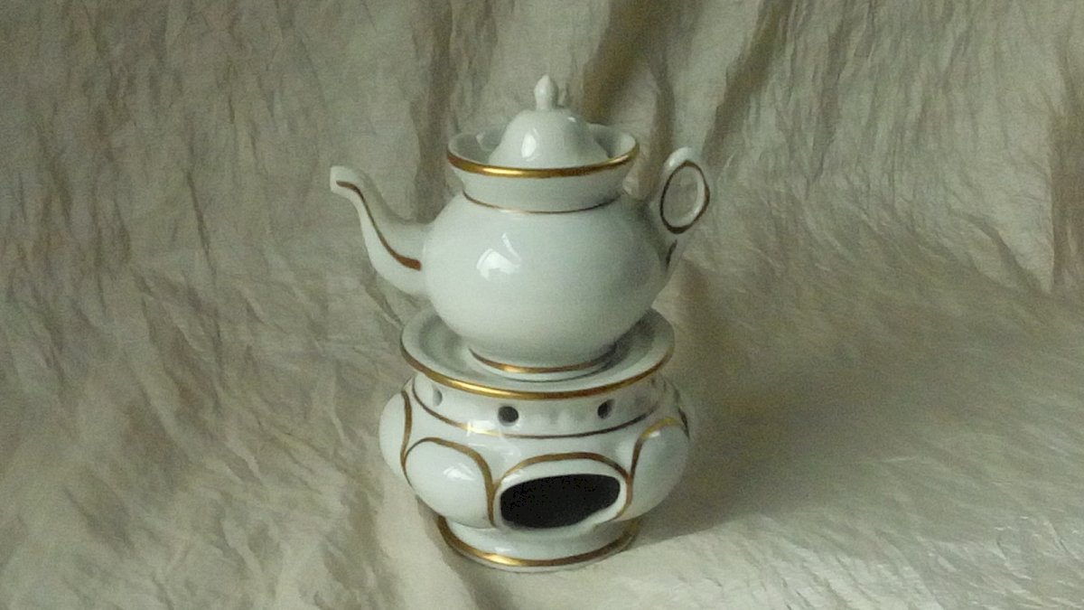 CHERISHED LITTLE TEAPOT IN PORCELAIN FROM PARIS DOLLHOUSE TEA SET HEIGHT 13.50 cm WIDTH 9 cm MISSING THE SMALL BURNER THE LID DOES NOT SEEM TO BE ORIGINAL BUT FITS WELL WITH THE SET IN GOOD CONDITION Condition: Used Item that has been used. potential imperfections.