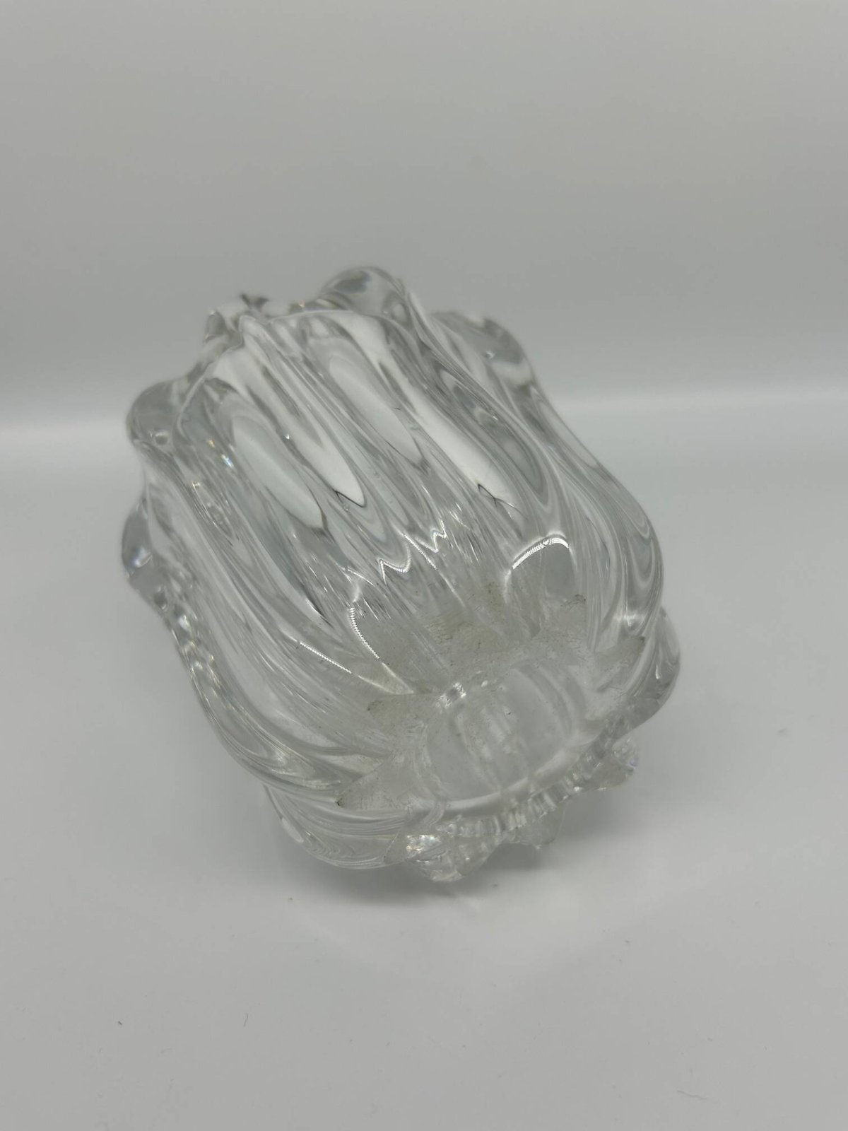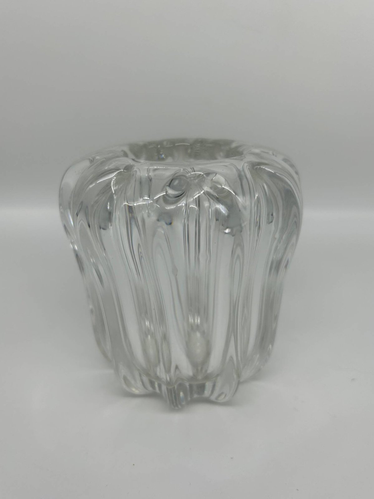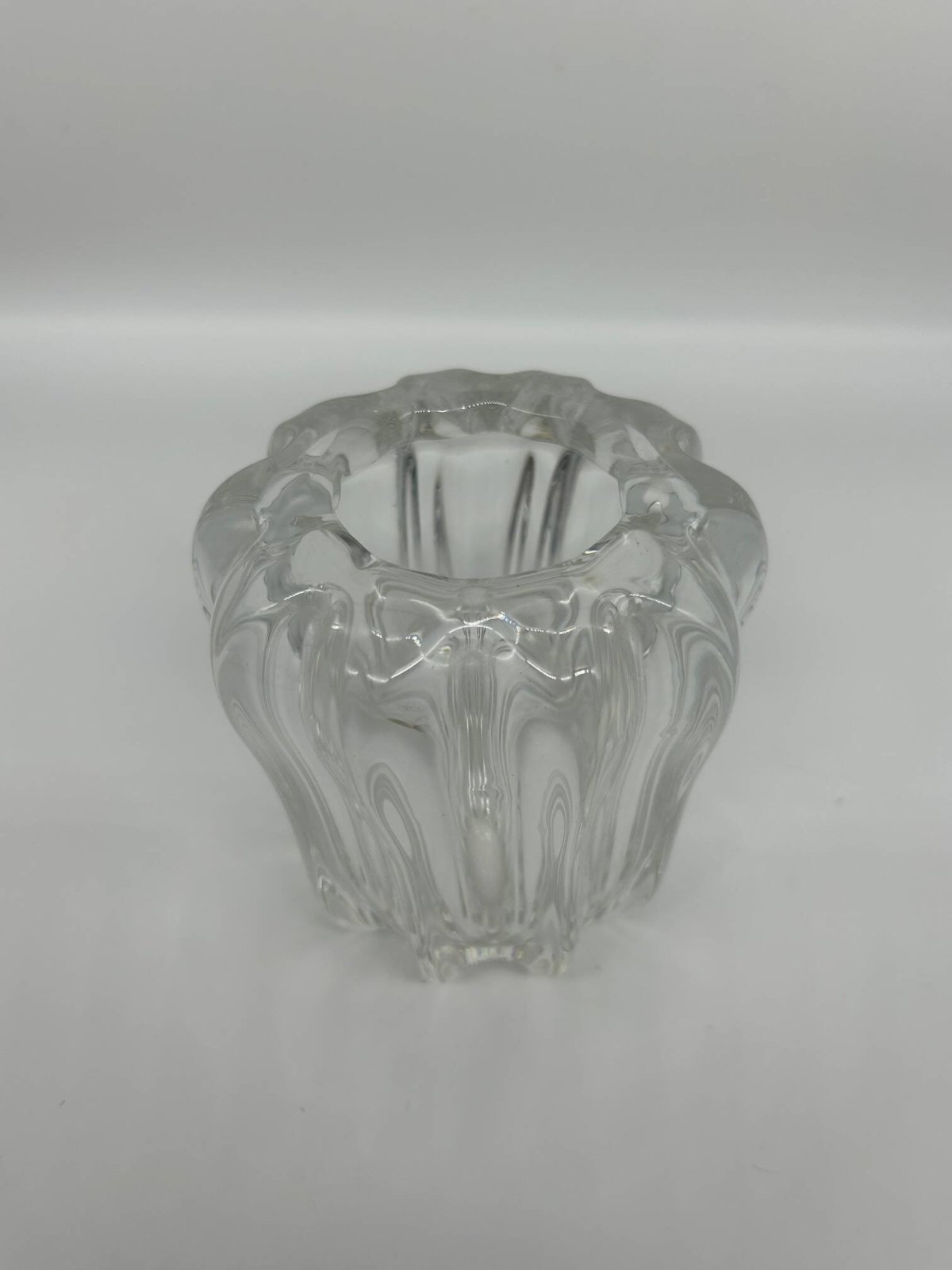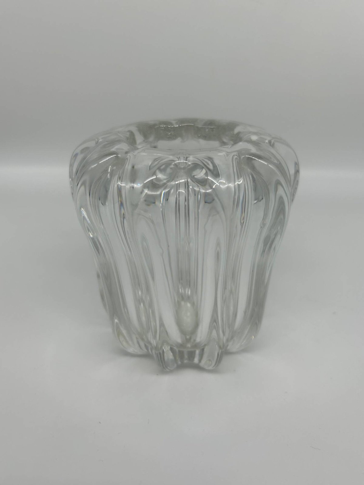 50s crystal vase, Pierre D'Avesn. L: 11 W: 11 H: 12