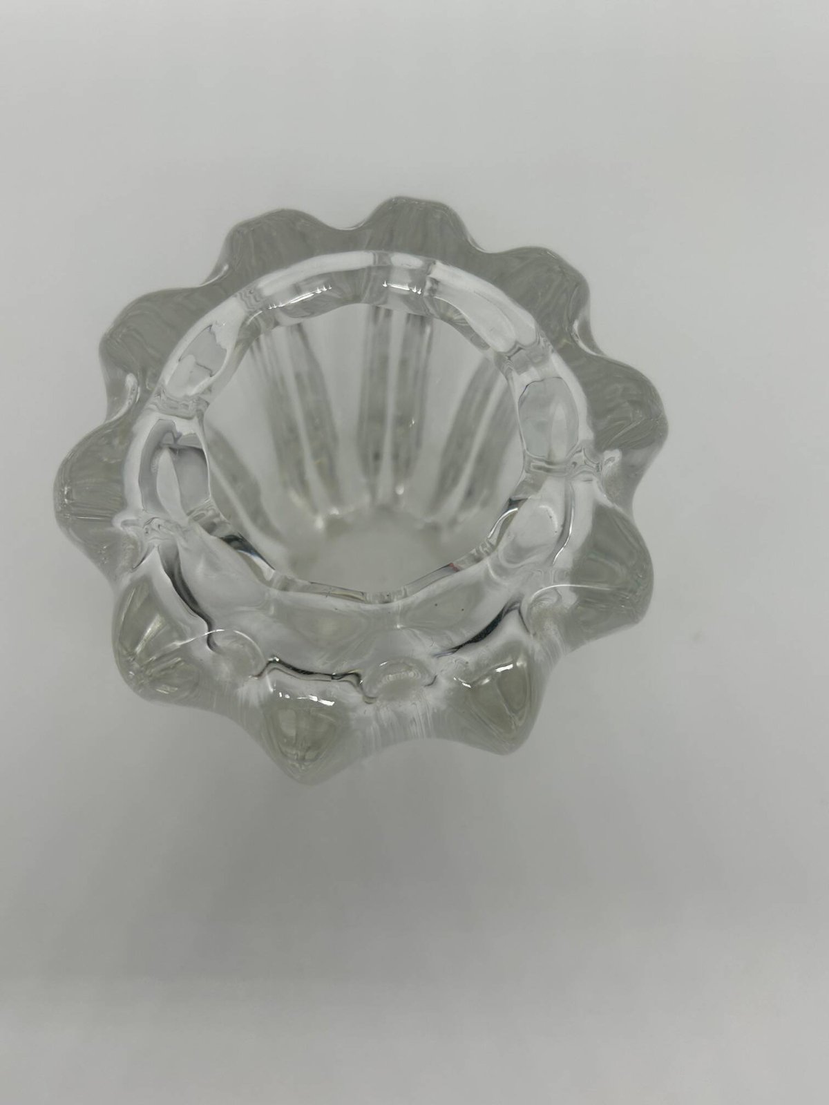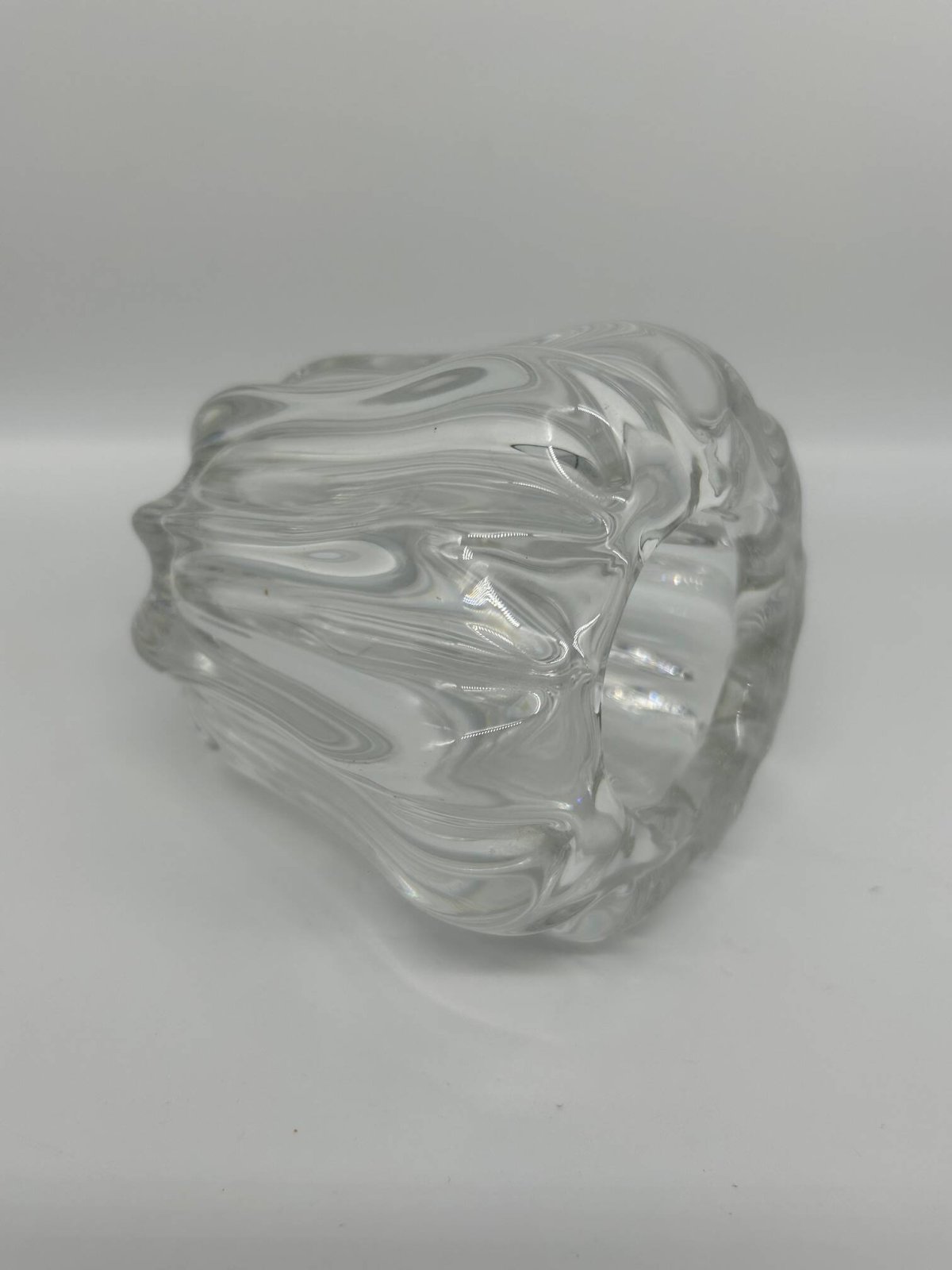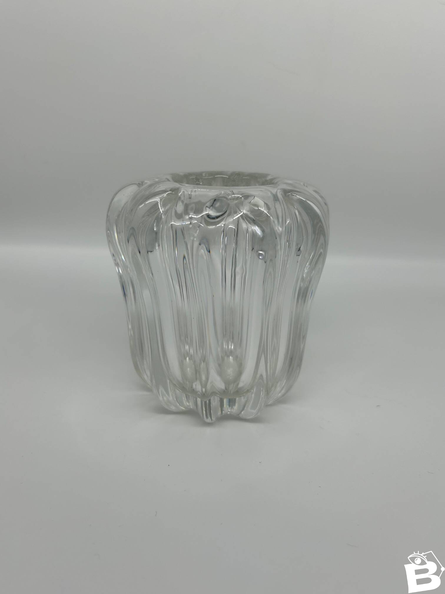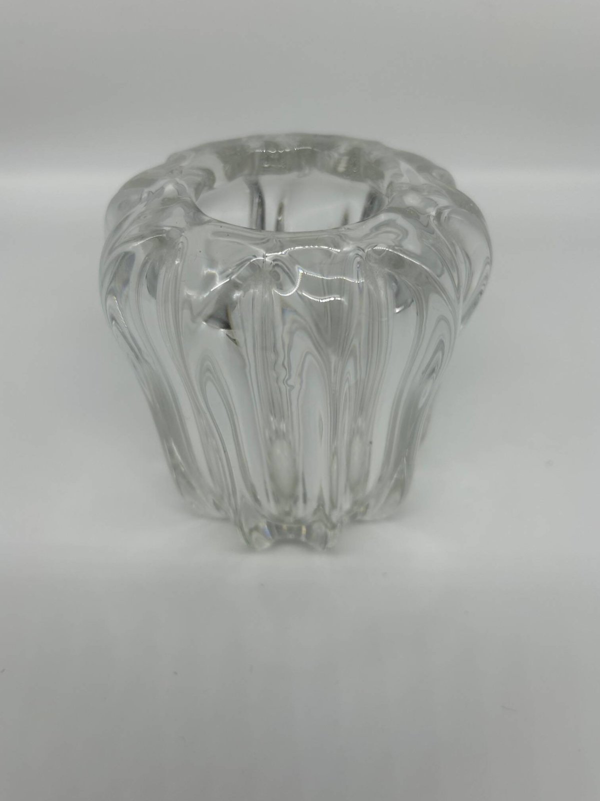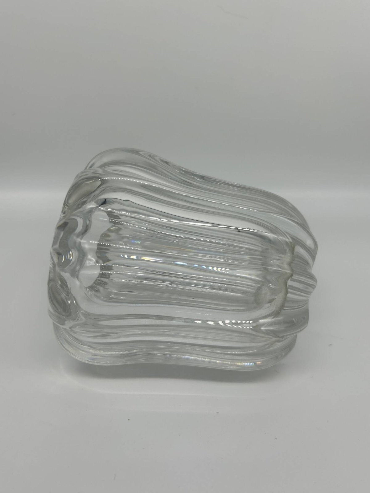 50s crystal vase, Pierre D'Avesn. L: 11 W: 11 H: 12