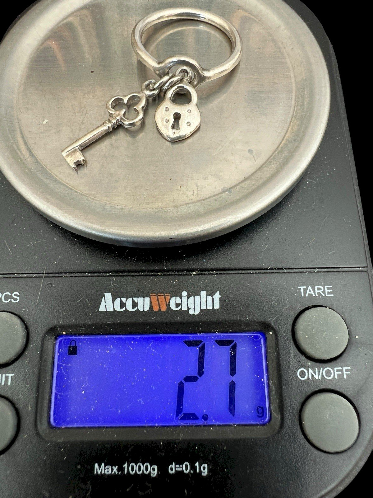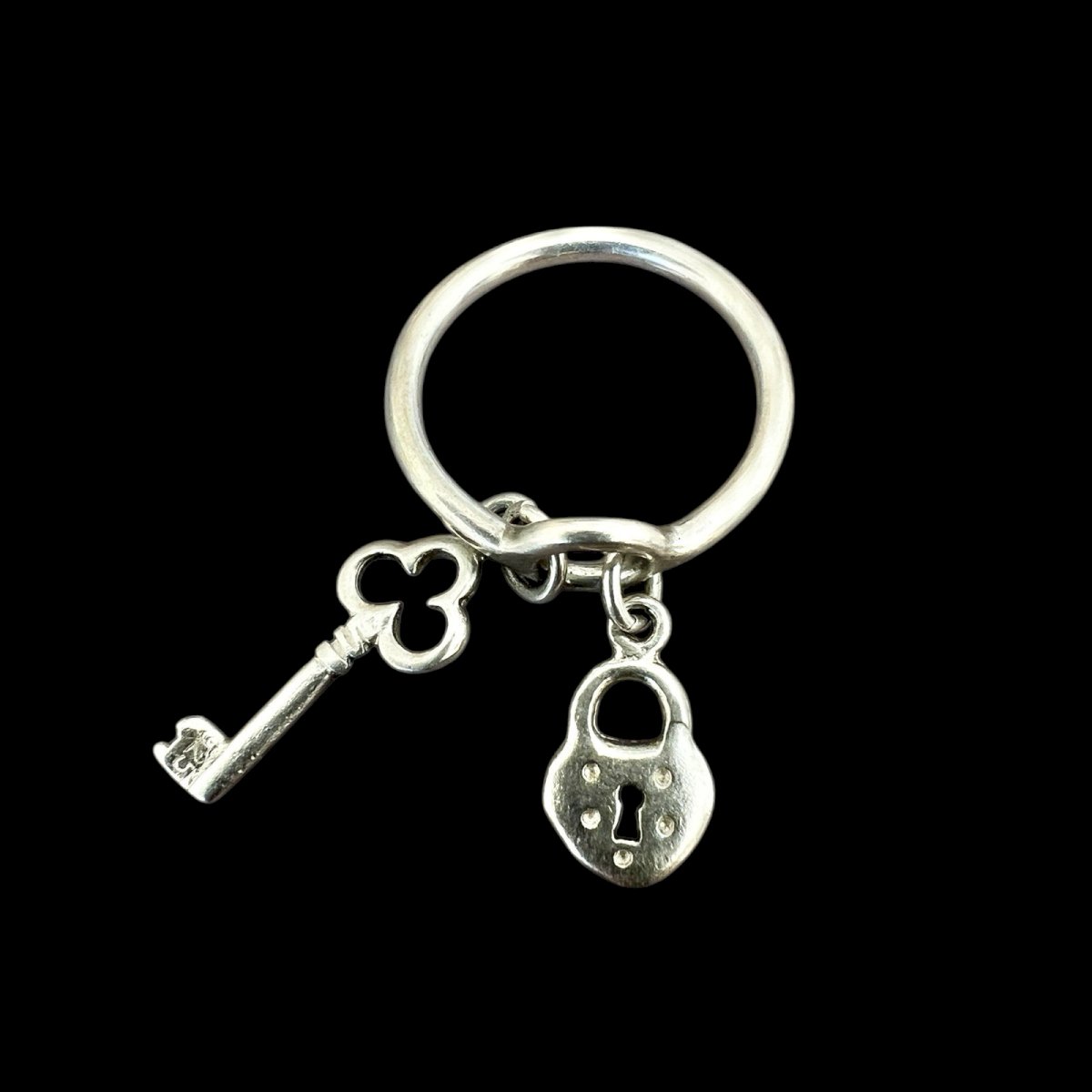 Small vintage silver 925 ring with key and love padlock size 48fr / 15.3 mm. Interesting small ring with pendants, shaped like a padlock and keys. This small ring is stamped 925 on the key. Its size is 48 FR or 15.3 mm. Its weight is 2.7 g. Good vintage condition. The case is not included. Condition: Used: Item has been worn. ...Used: Item has been worn. Any potential imperfections. Dominant stone: None Brand: Vintage Love Dominant color: Silver Size: 48 Material: None Metal: Sterling silver Shape of the ring: Ring with pendant.