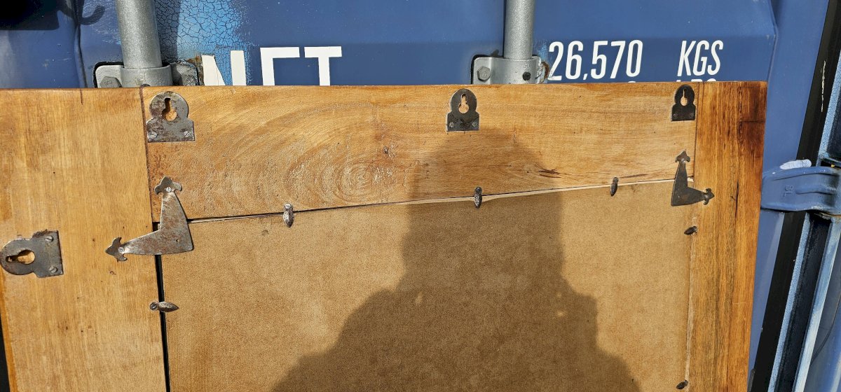 Solid teak mirror 93.5 X 2.5 X 117 cm / multiple hooks on the back for horizontal or vertical wall mounting. W: 93 D: 2 H: 117
