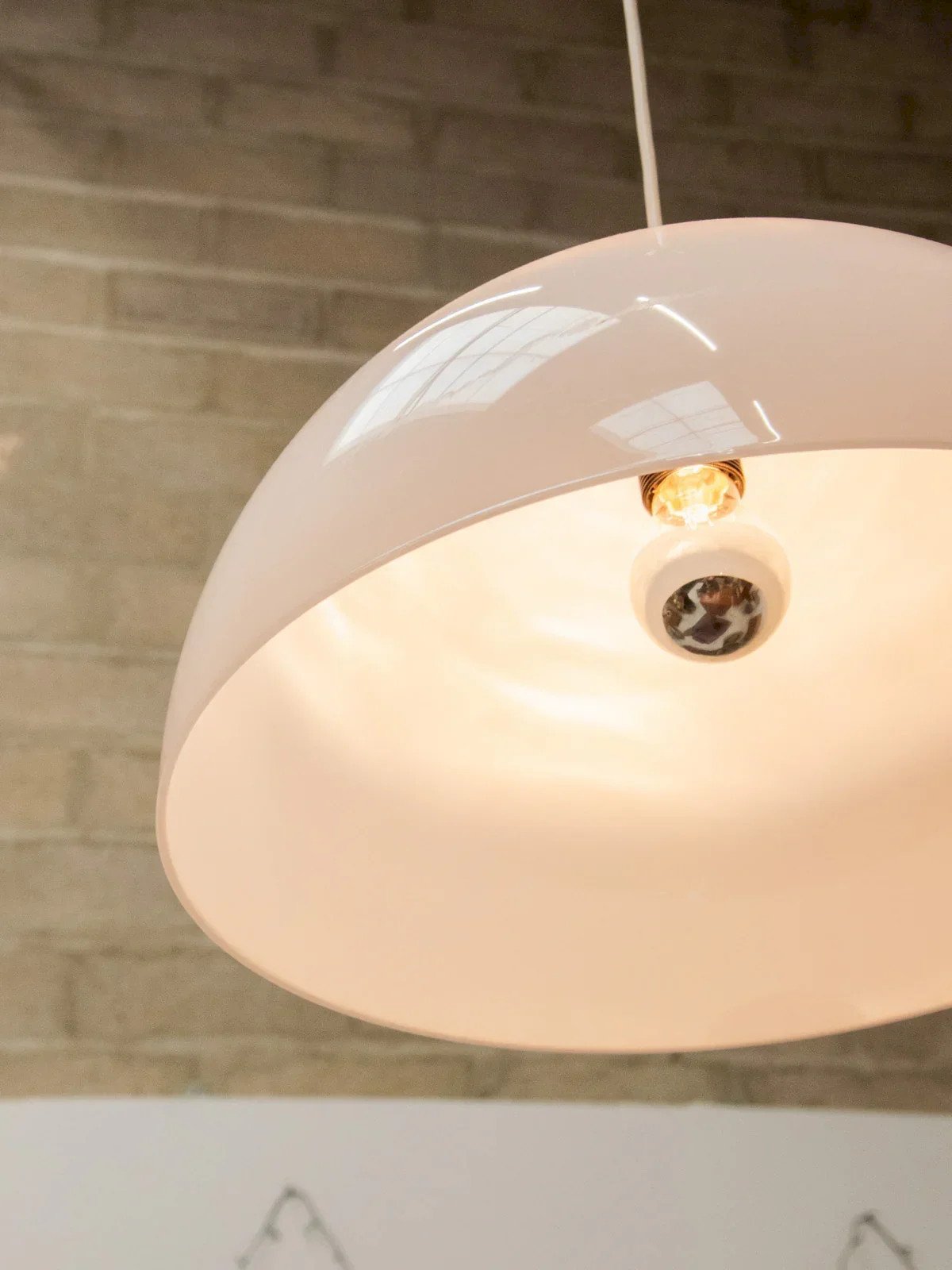 Add a retro touch to your space with the white plexiglass globe pendant light from the 70s. This timeless classic is distinguished by its sleek design and timeless elegance, bringing a soft and warm light to your interior. Made from quality plexiglass, it harmoniously fits into all styles of decoration, from vintage to contemporary. Illuminate your home with this iconic light fixture that evokes the creative spirit of its era. White, with a pinkish effect when lit depending on the bulb. Height: 24 cm Diameter: 40 cm Condition: Used: Item has been used. Item shows some superficial signs of wear... Used: Item has been used. Item shows some superficial signs of wear, fully operational and functioning correctly. It may be a demonstration model or an item returned to the store after a short period of use. Possible imperfections. Brand: Debongout Type: Thrifted product Style: Contemporary Material: Plexiglass Vintage: Yes