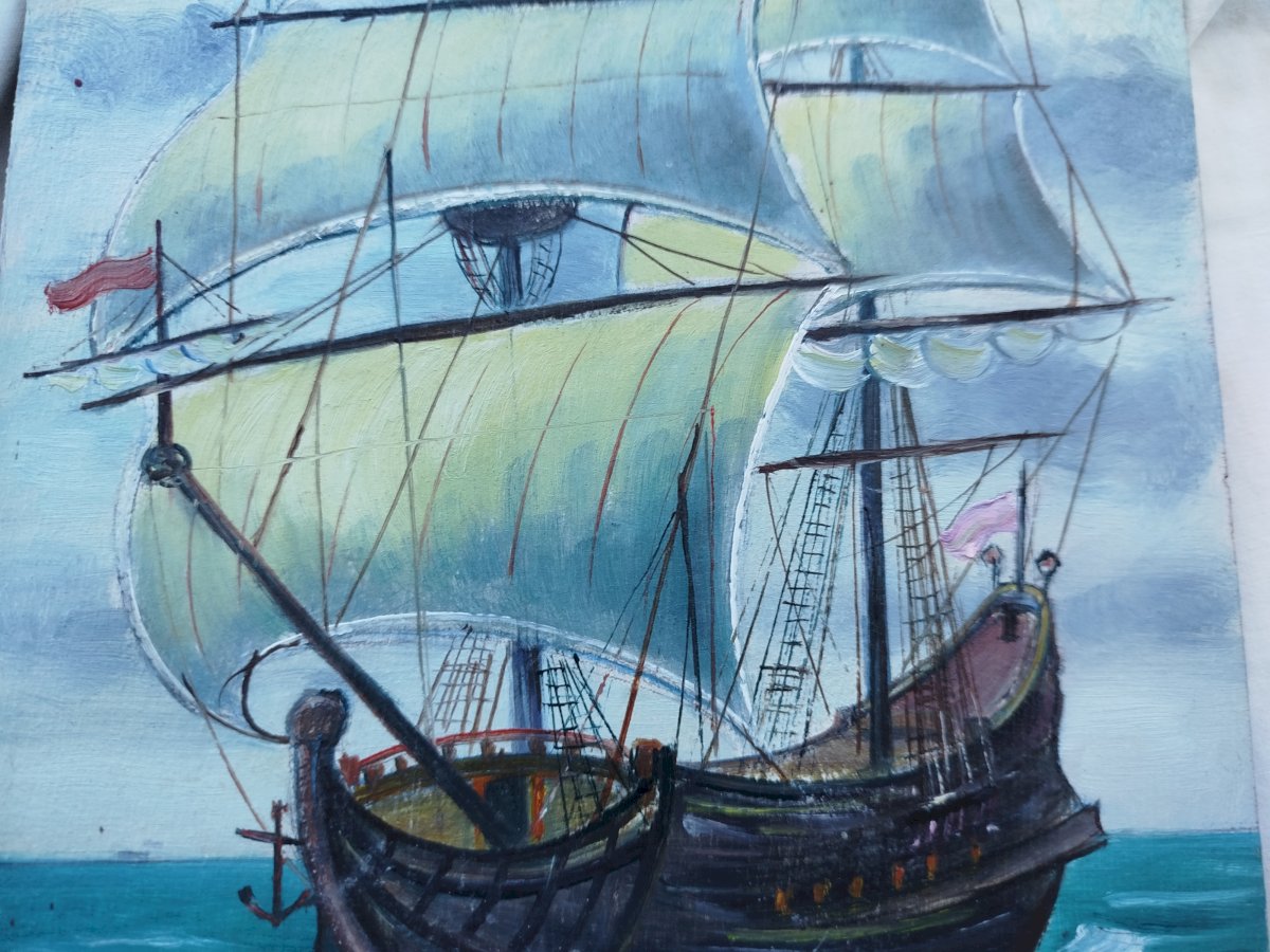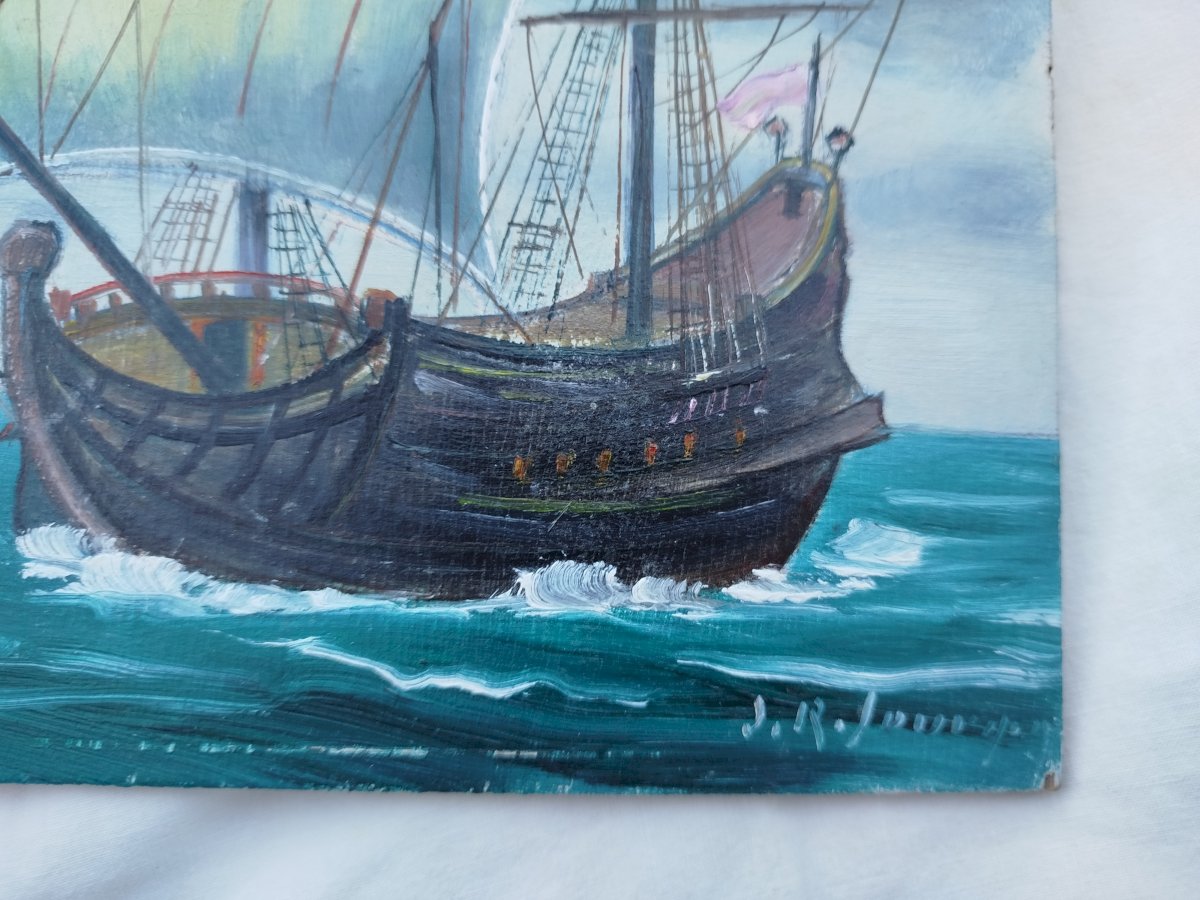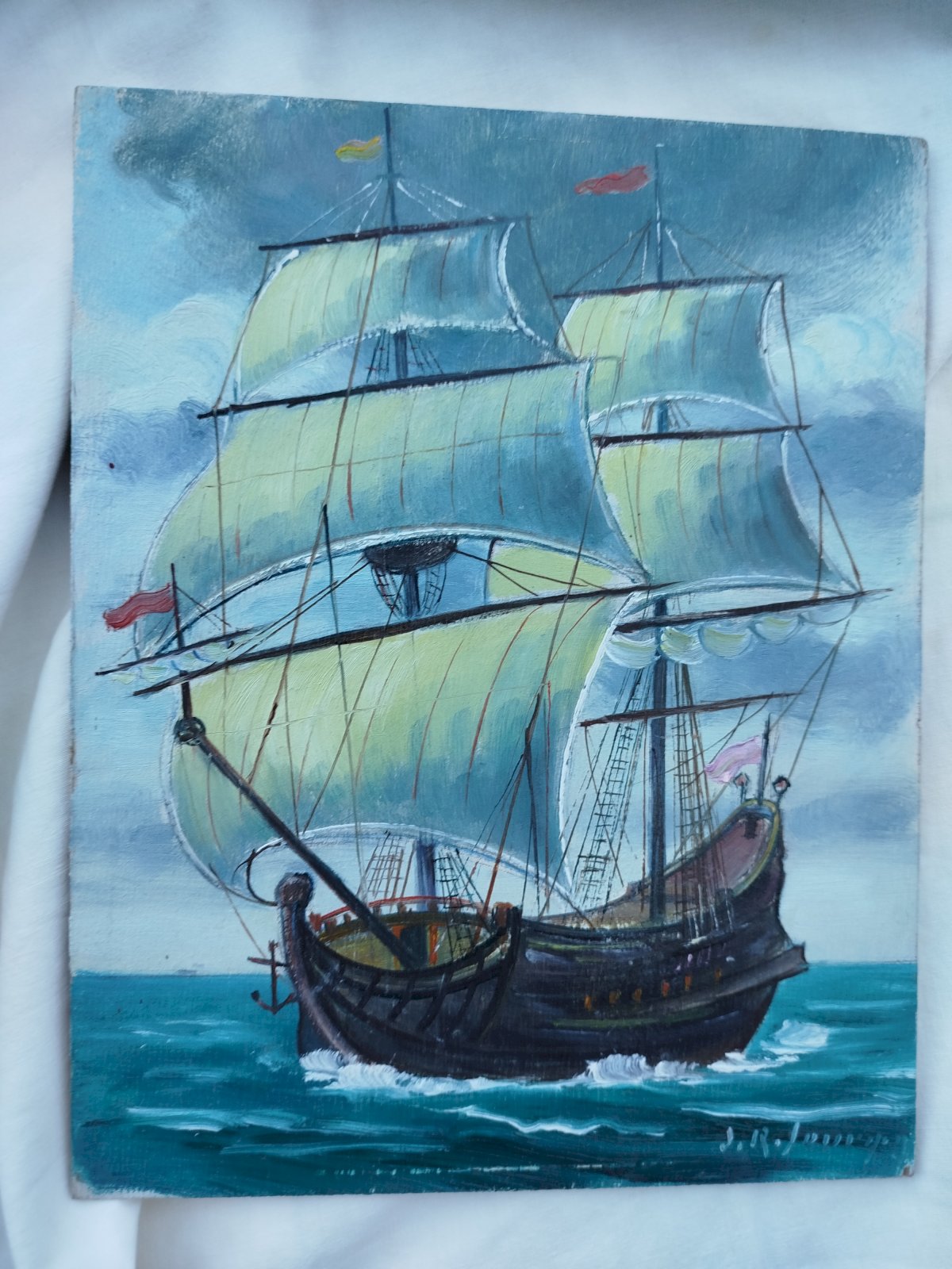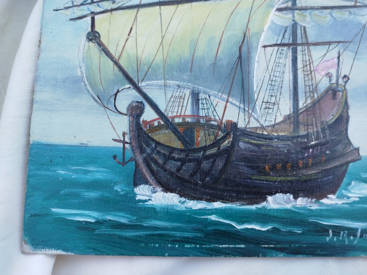 Table painting on wood panel Trees in bloom Signed C.Bizard and Dedicated ...