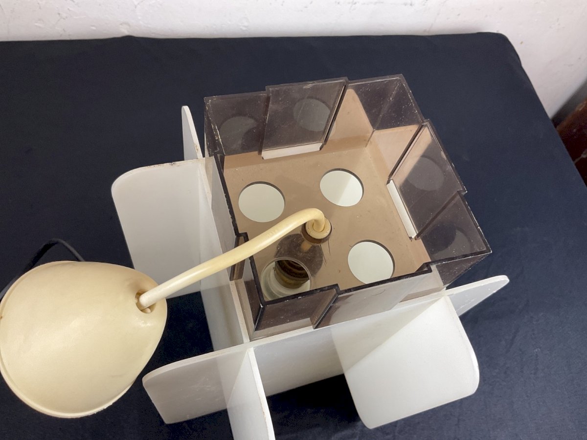 Space Age 70 lampshade plexiglass 1970 Height: 25 cm Dimension: 20.5 x 20.5 cm Type: lampshade Period: Space Age Dominant color: White Style: 1970 Material: Plastic