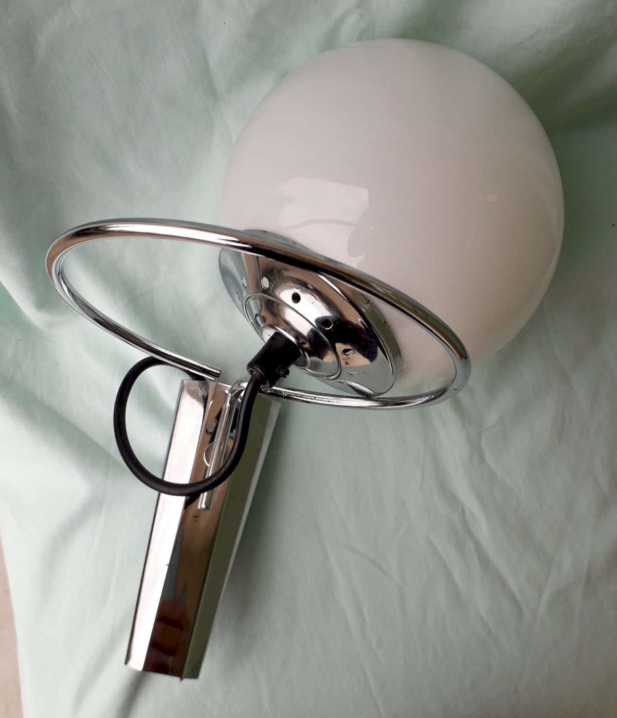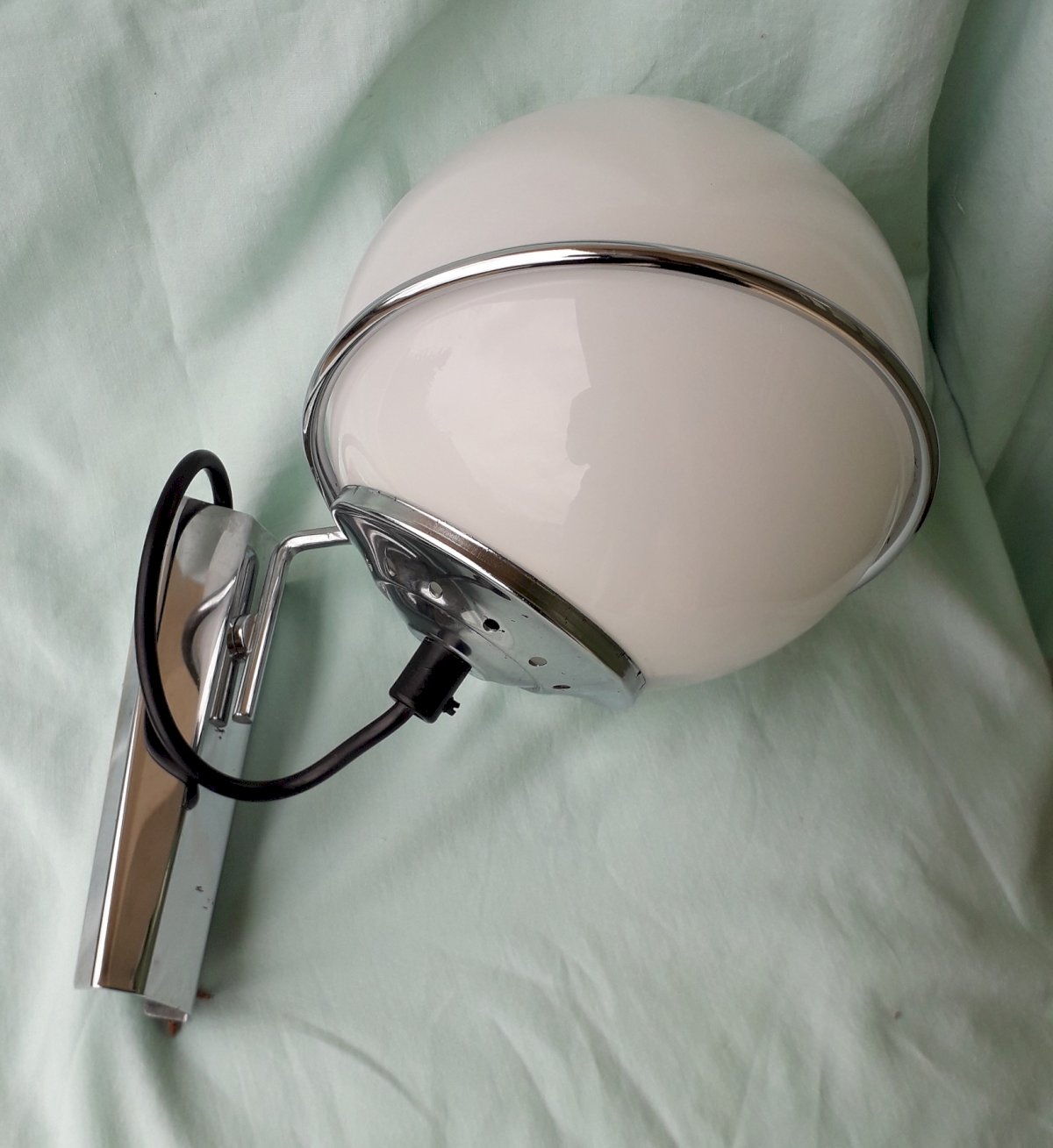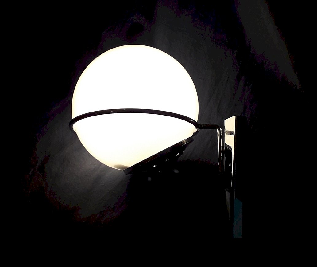 1970s wall sconces, Space Age style, made of chrome metal and removable opaline glass, in the style of productions by the Dutch company Raak. Good overall condition, with some rust spots on the metal (see photos), opaline in perfect condition. Dimensions: height 24 cm, width 16.5 cm, depth 23 cm. Weight 0.8 kg. Please feel free to contact me for any additional information and/or to make your offers. Check out my other items for sale.