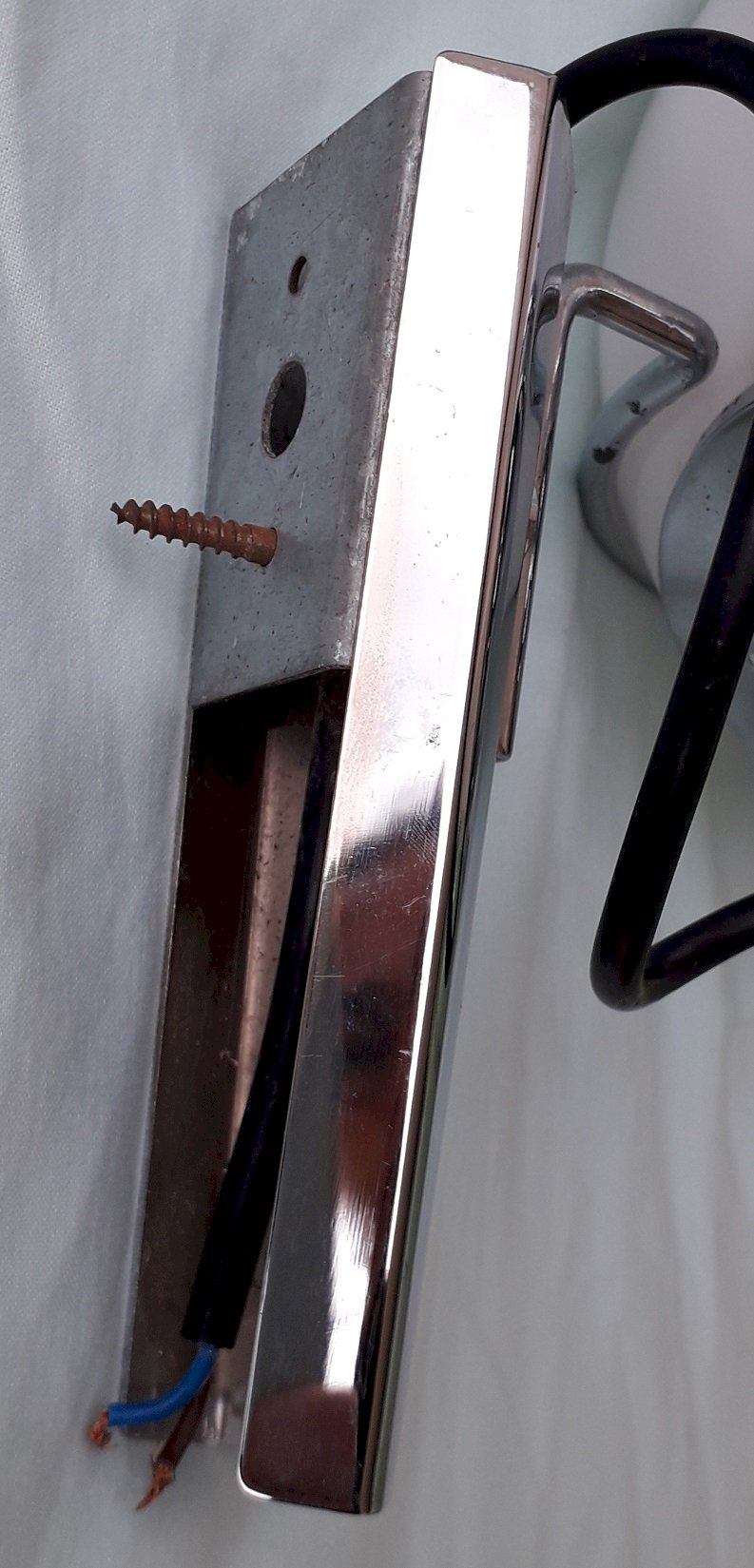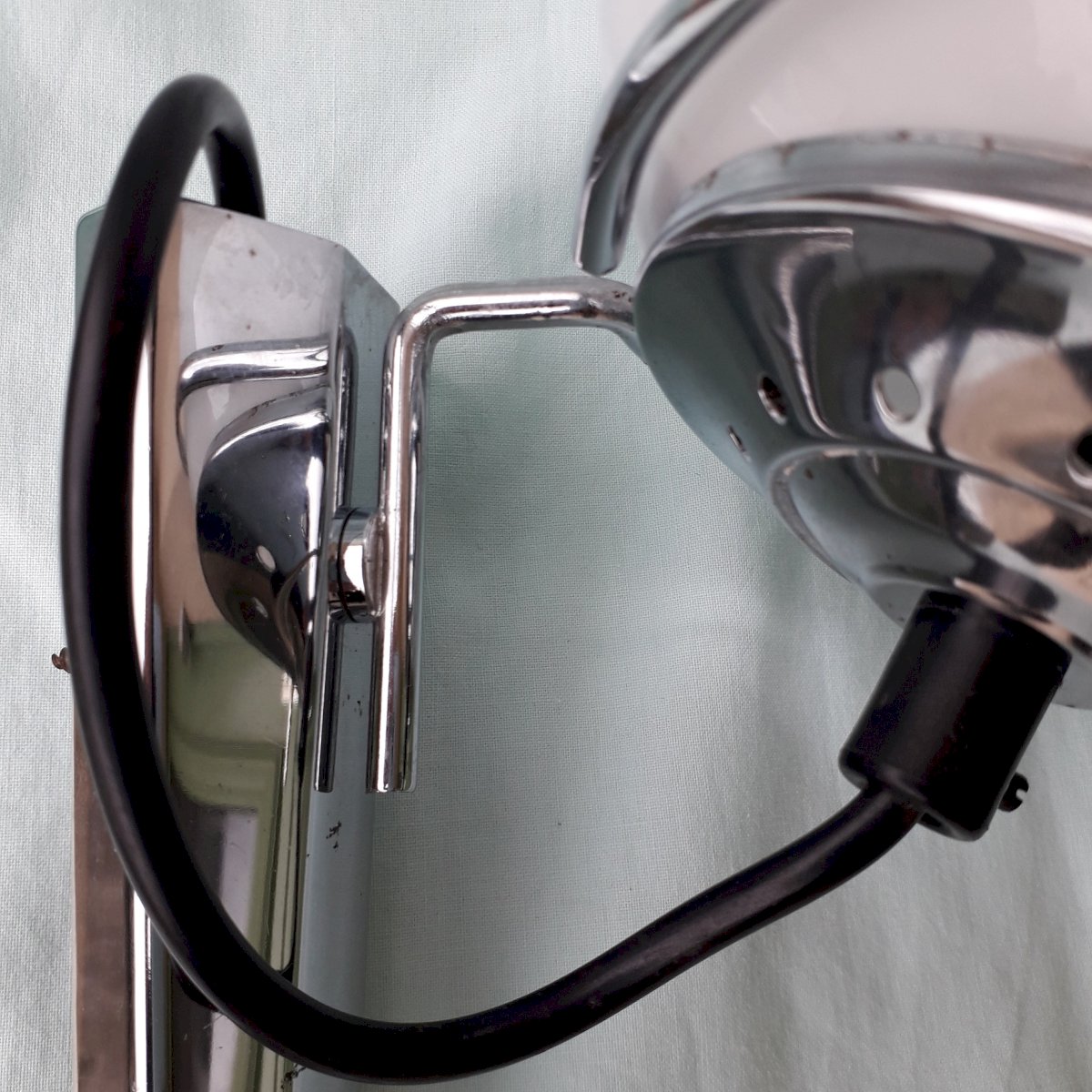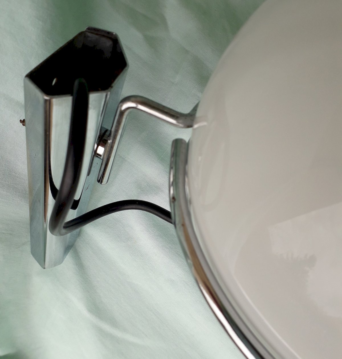 1970s wall sconces, Space Age style, made of chrome metal and removable opaline glass, in the style of productions by the Dutch company Raak. Good overall condition, with some rust spots on the metal (see photos), opaline in perfect condition. Dimensions: height 24 cm, width 16.5 cm, depth 23 cm. Weight 0.8 kg. Please feel free to contact me for any additional information and/or to make your offers. Check out my other items for sale.
