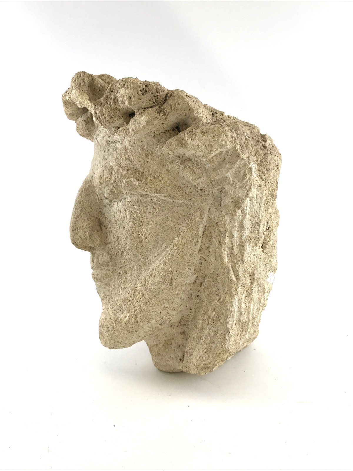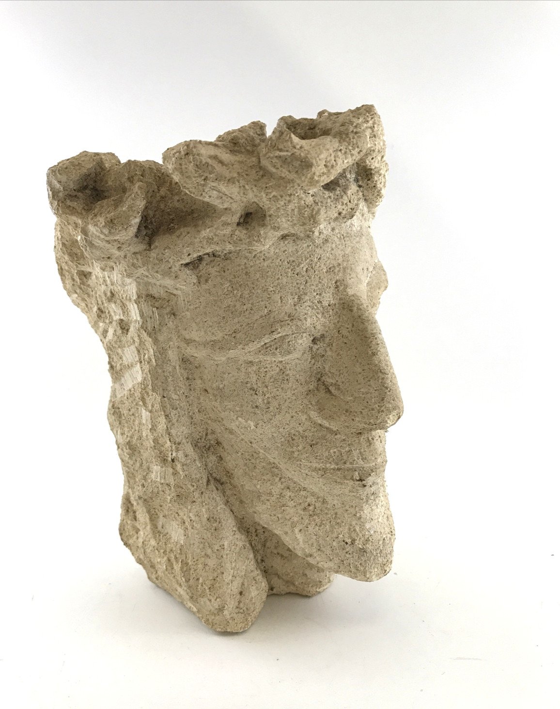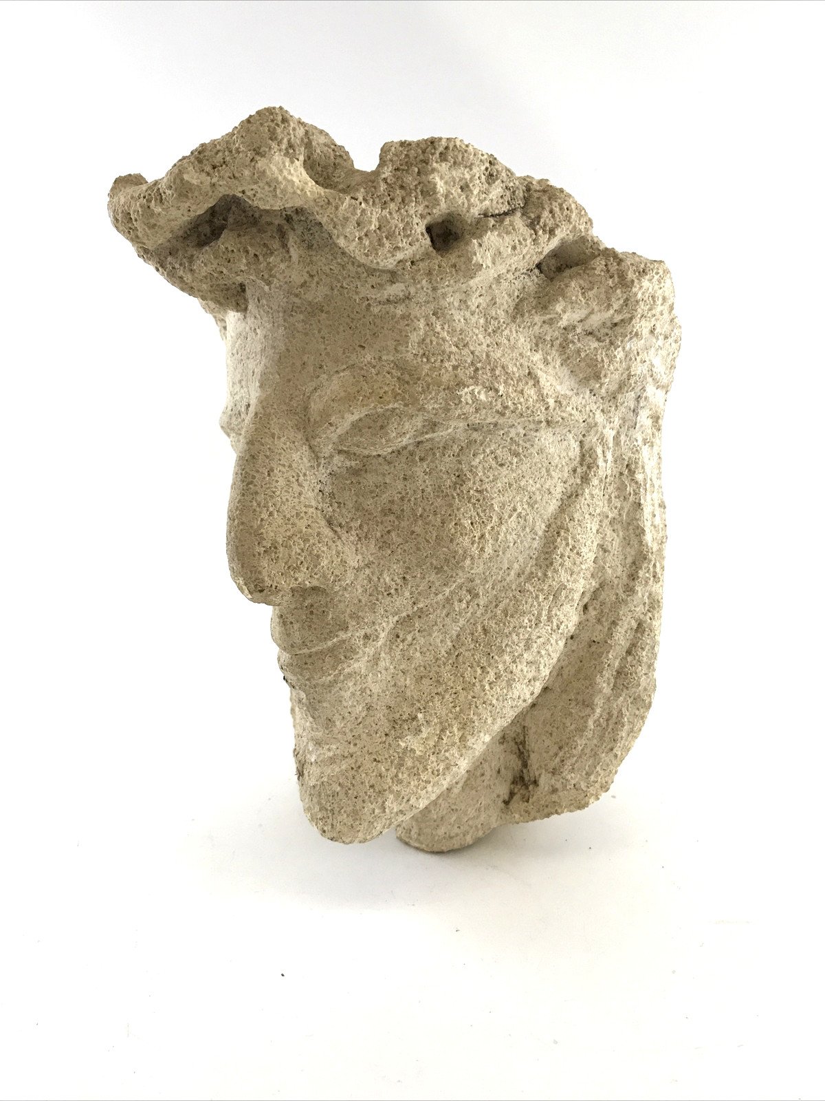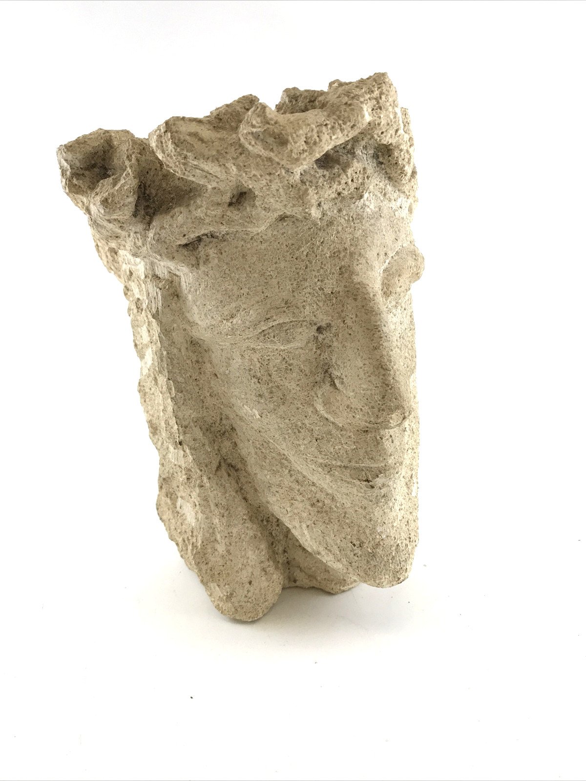 Beautiful limestone head of Christ, likely from the Lorraine or Champagne region, dating from the 16th century. Originally part of a monumental Crucifixion or possibly a Christ of Pity / Carrying of the Cross group. The stylised, downcast eyes are typical of regional workshops active around 1500, echoing the spirit of the Master of Pont-à -Mousson. The crown of thorns, pierced using a trepan, is a remarkable detail of craftsmanship. A moving fragment of sacred art, still carrying the quiet emotion of its original setting. Perfect for collectors of Medieval and Renaissance sculpture. Details: Region: Lorraine or Champagne Period: 16th century Material: Limestone Type: Fragment – Head of Christ Dimensions: • Height: 20 cm (7.87") • Width: 16 cm (6.30") • Depth: 16 cm (6.30") Condition: Wear consistent with age, beautiful surface patina, stable.