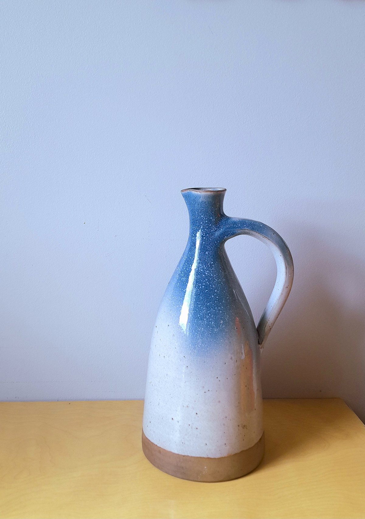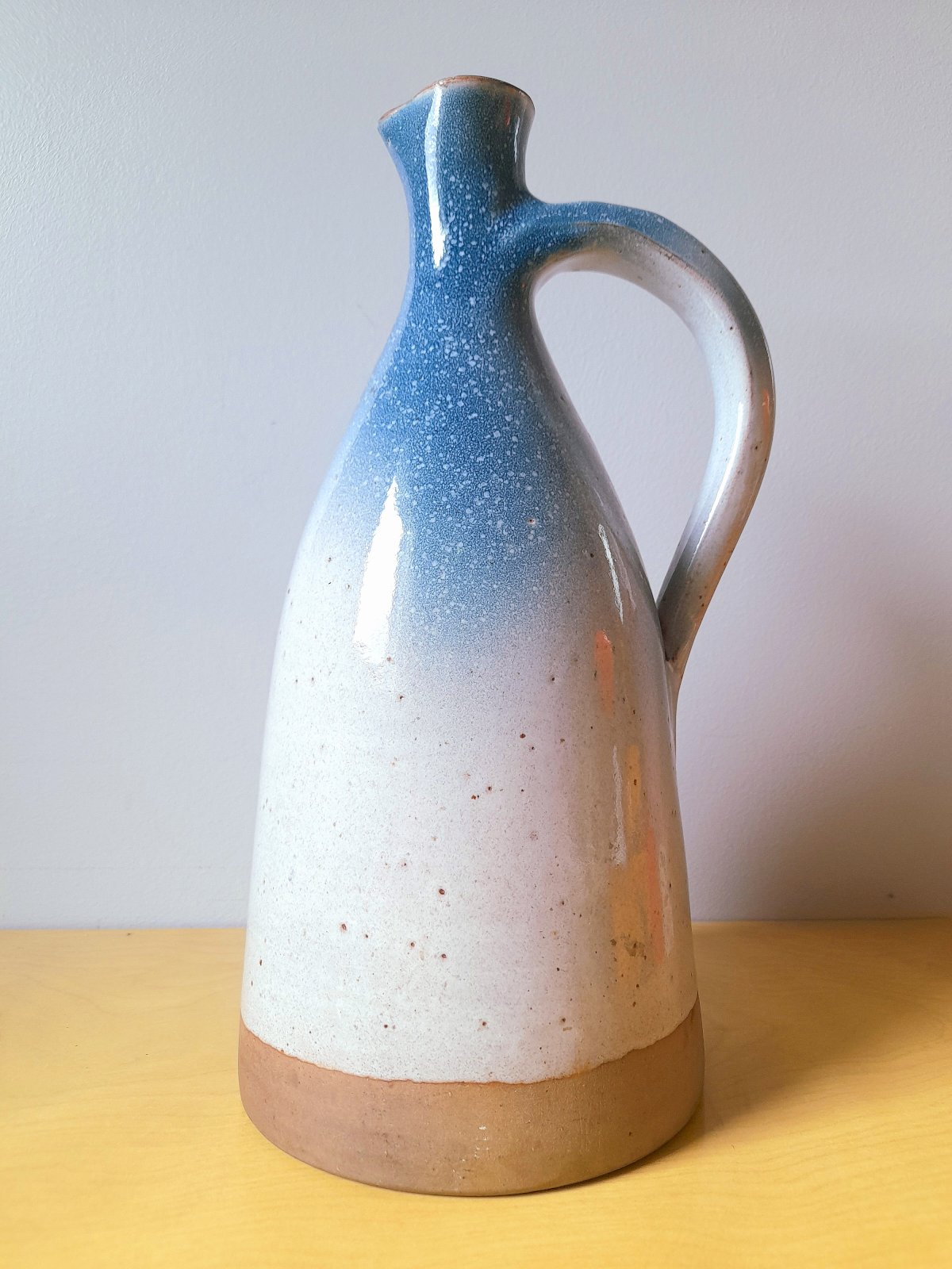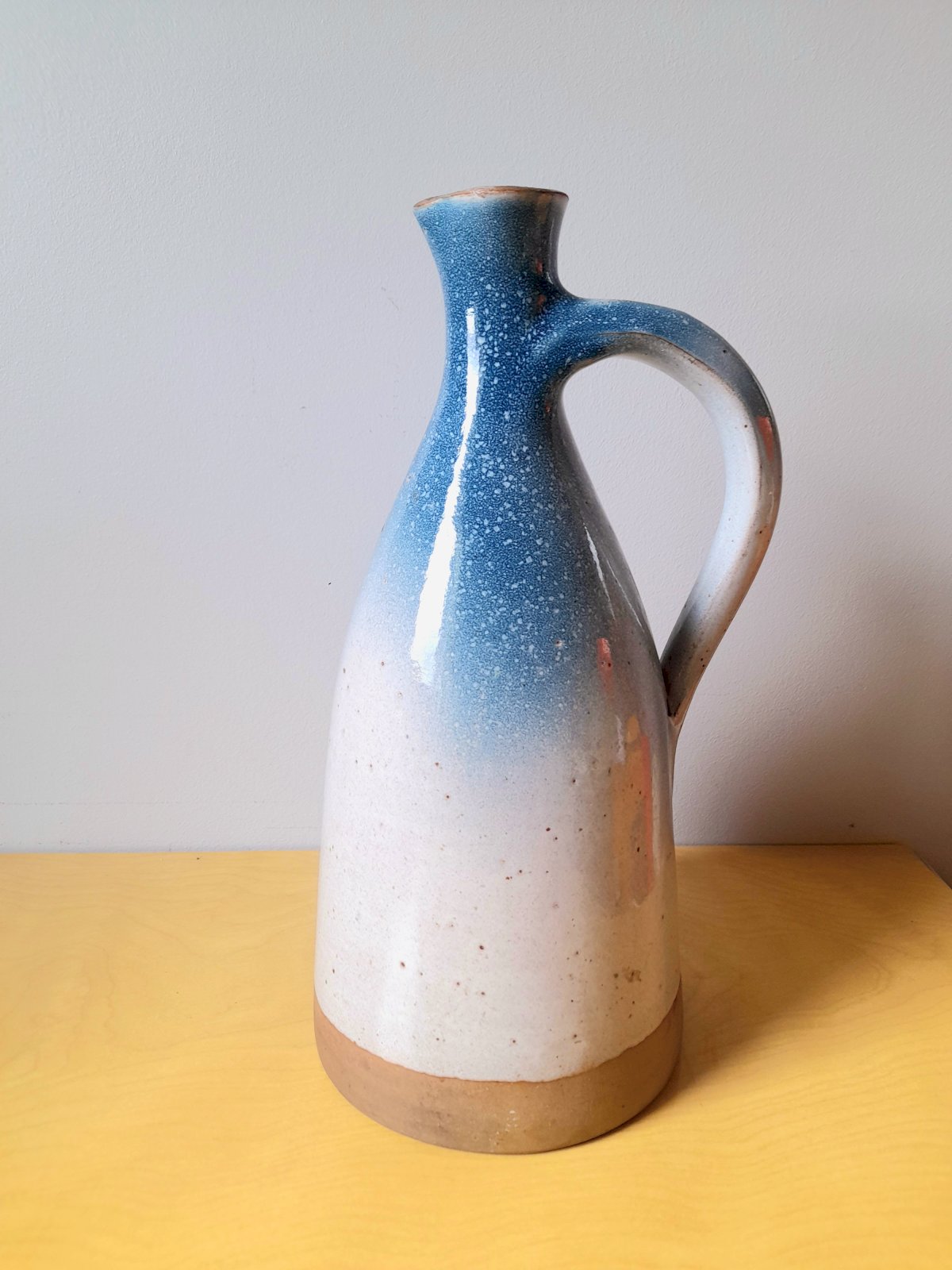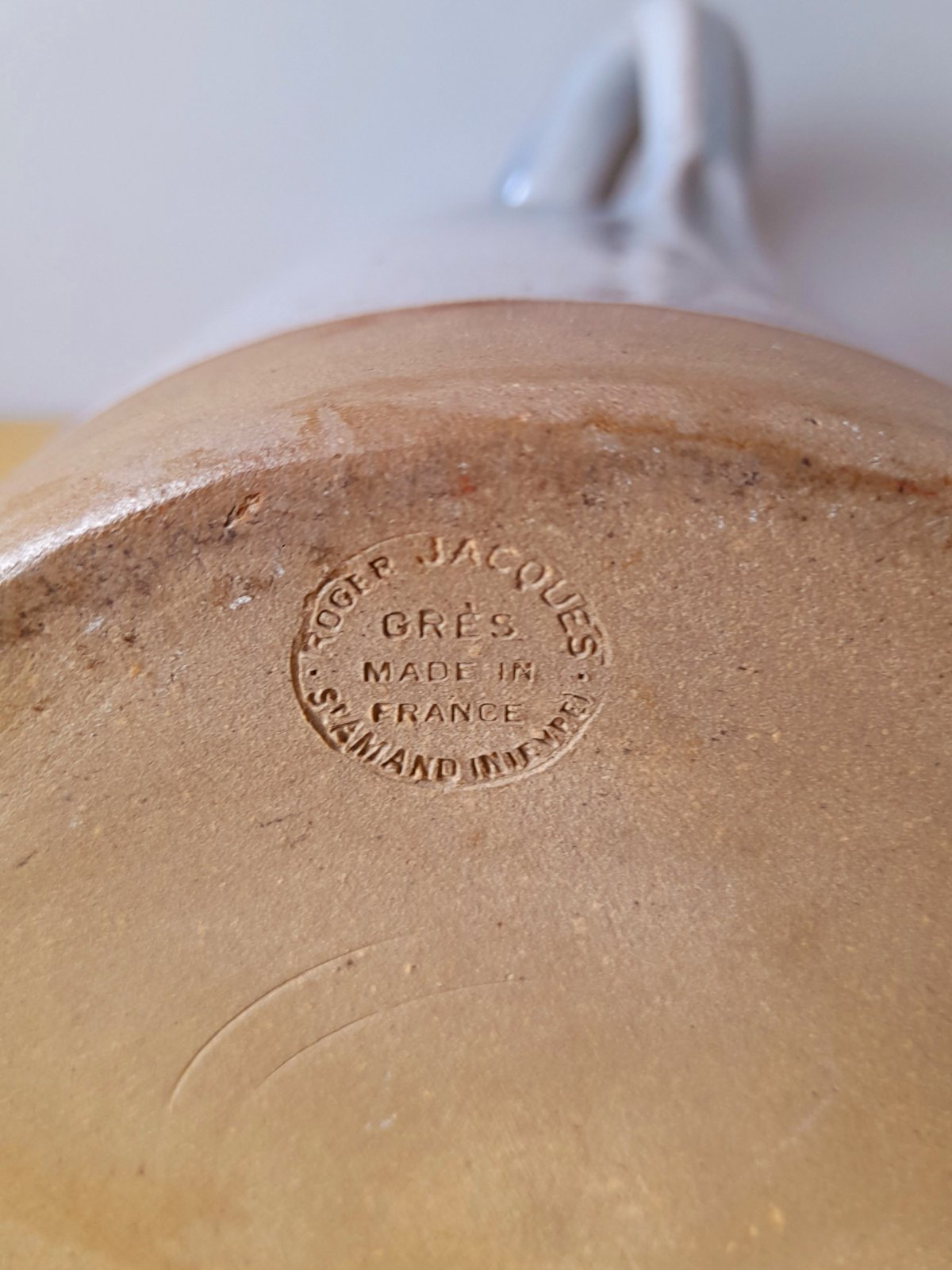 Stoneware pitcher signed Roger Jacques Blue/Yellow