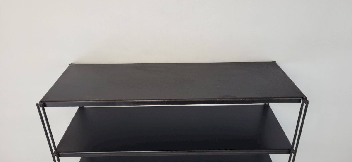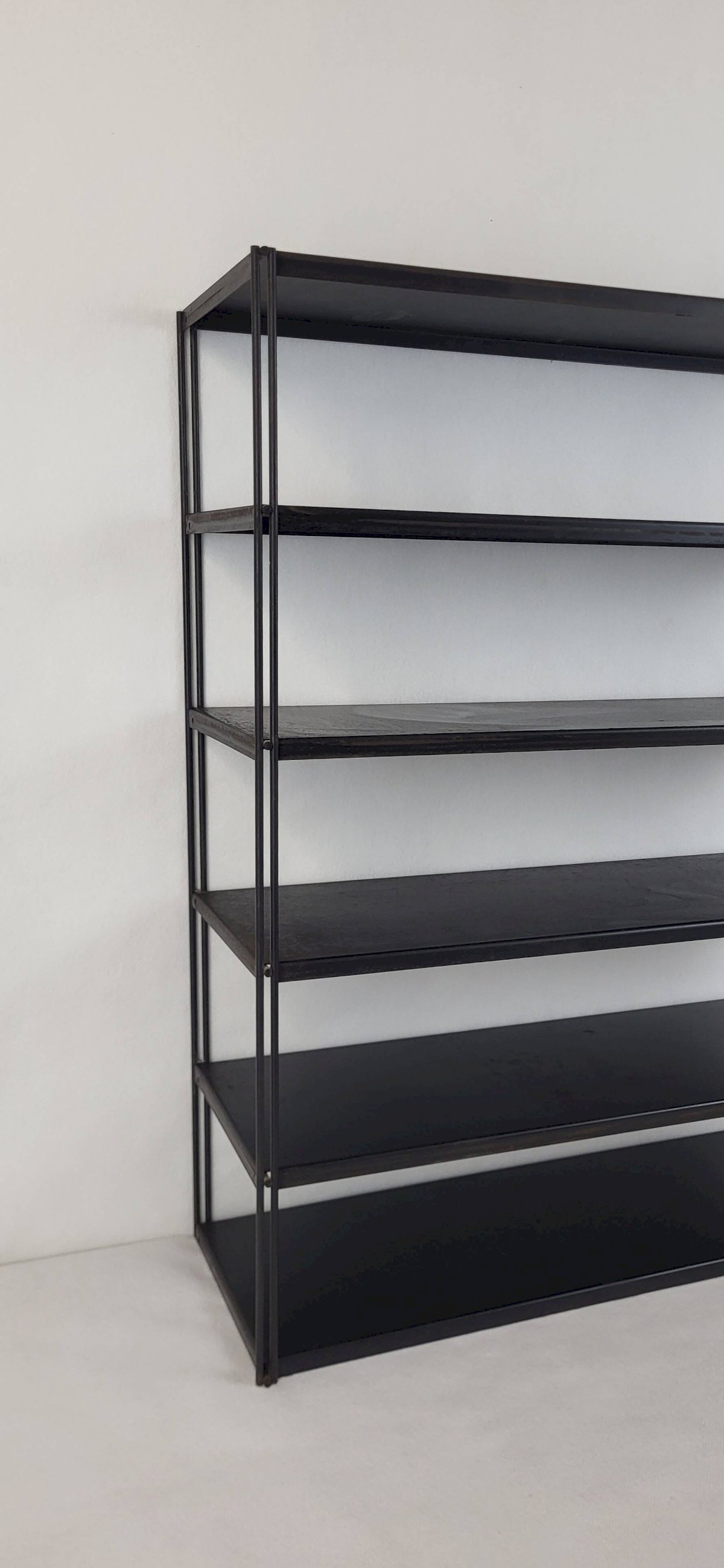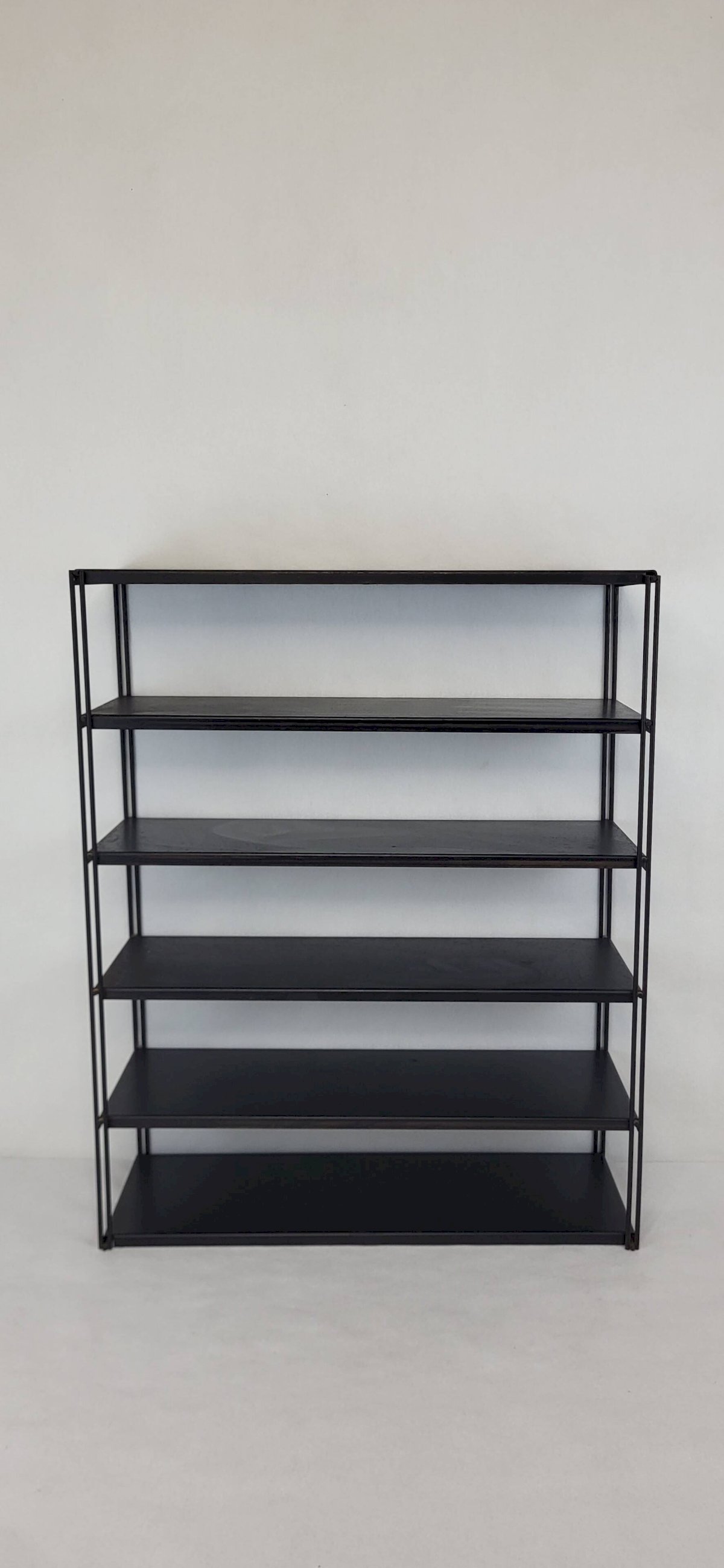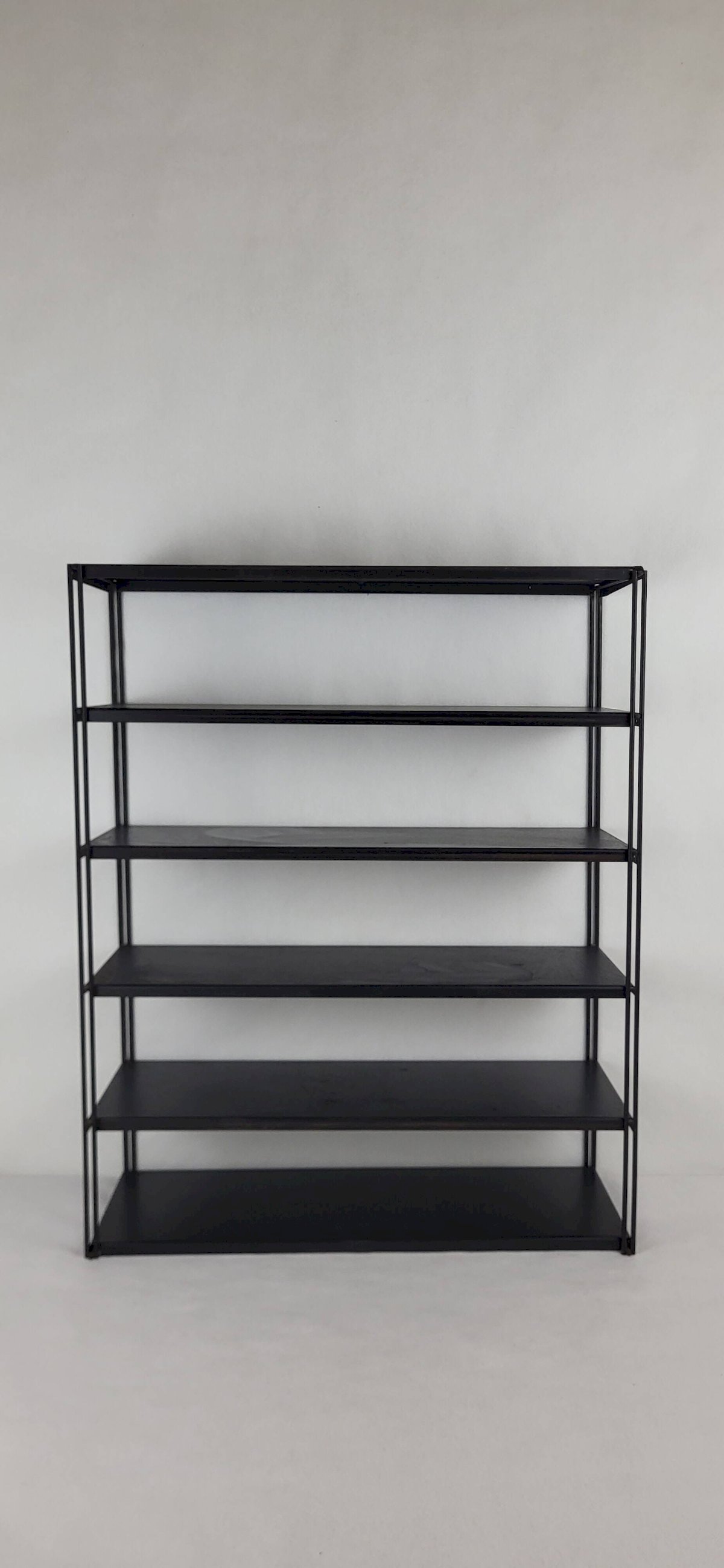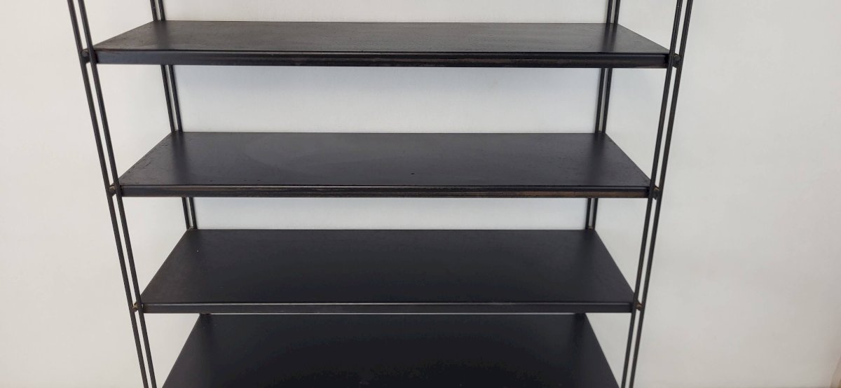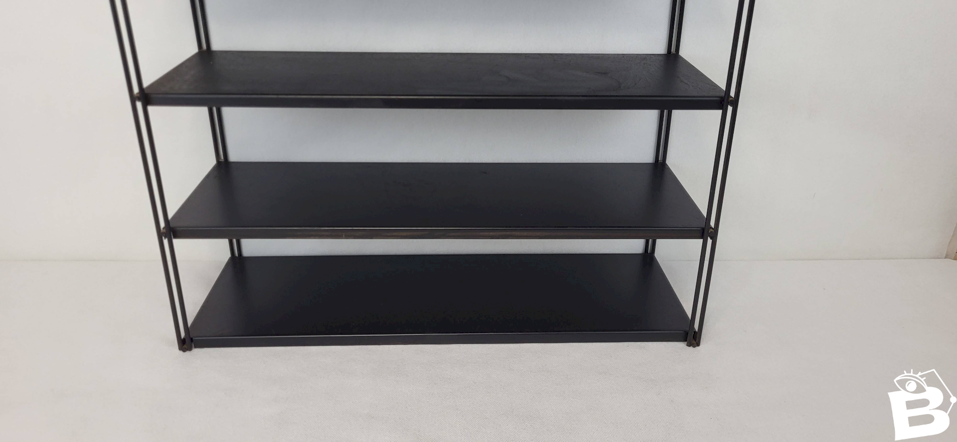 Tomado/String Wall Shelf 1970s. 6 black metal shelves.