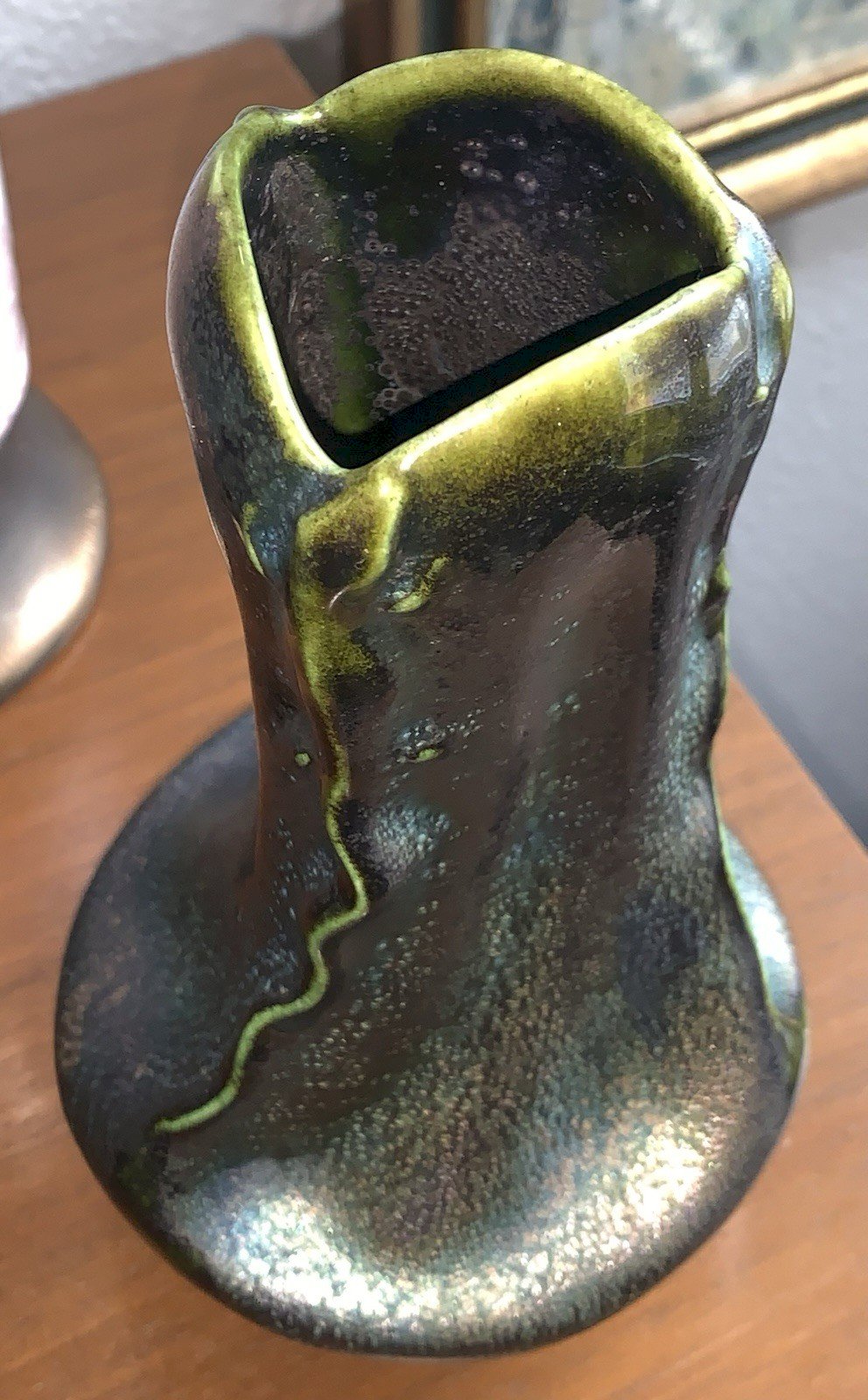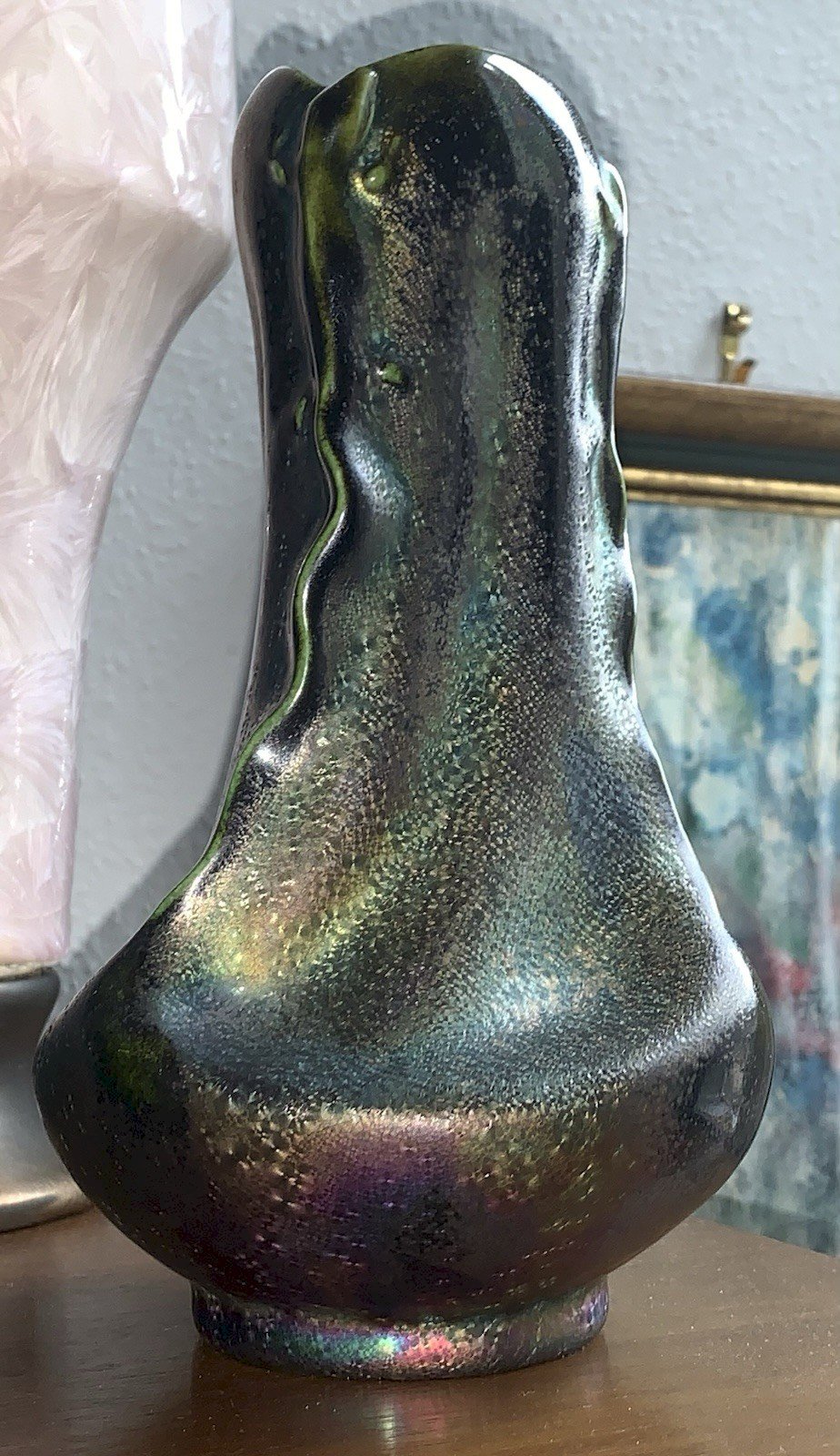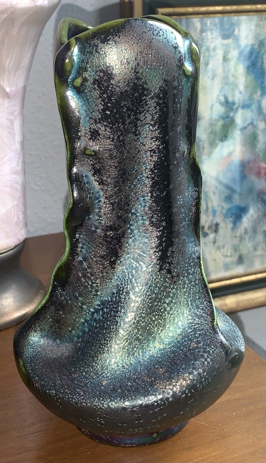 Iridescent ceramic vase Heliosine decorated with salamanders Austria Vienna Secession Circa 1900's Numbered on the underside Piece in superb condition Height: 20.2 cm Diameter opening: 6.5 cm Diameter at base: 12 cm Authenticity: Original Type: Showcase item, Decorative Period: Art Nouveau Origin: Austria Subtype: Vase Country of origin: Austria Material: Ceramic Style: Vienna Secession