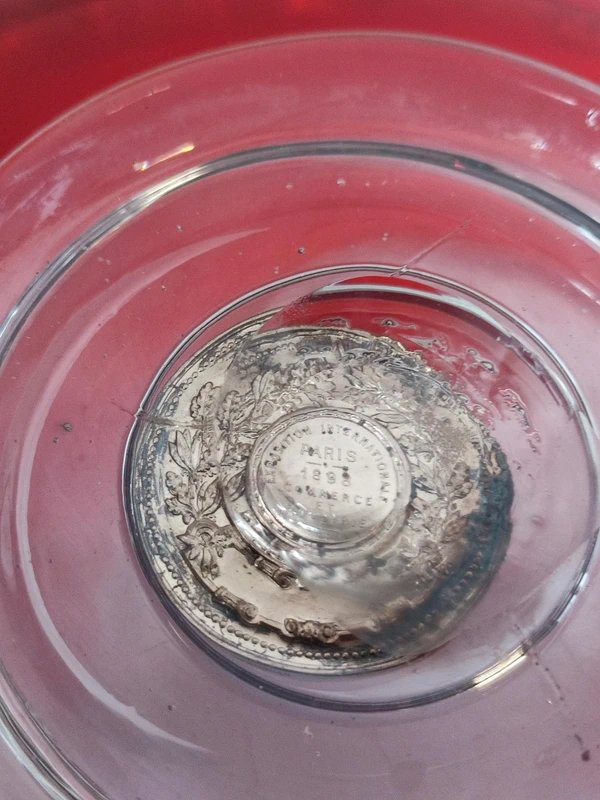 superb large Murano glass bowl with an inlay of a piece from the city of Paris, International Exhibition 1898, in good condition, rare model and of fine quality, diameter 34cm and height 8cm...