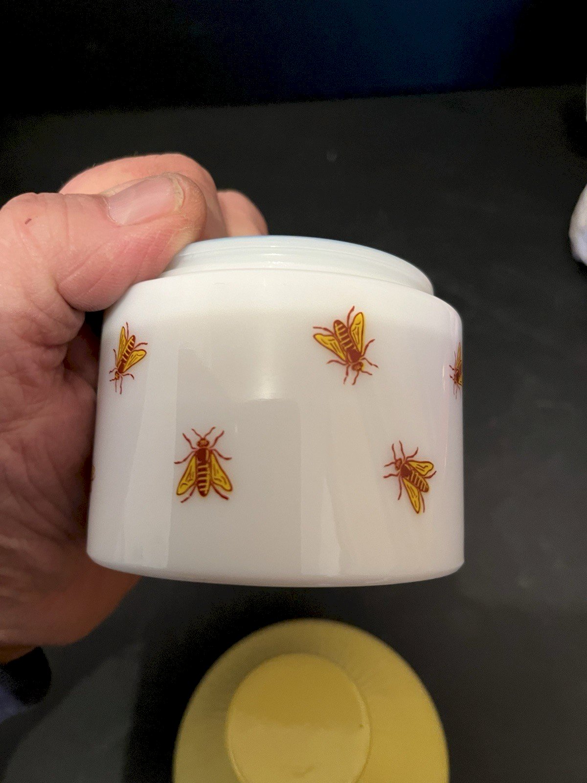 Fun glass opaline honey pot in white and yellow with a bee design. Good condition, height 14 cm, diameter 8.50 cm, height of white base 6.50 cm, weight 500 gr. Please look at the photos above which will also serve as a description. Careful and secure packaging via Mondial Relay or postal service to be chosen during your purchase. Thank you all and happy hunting in my shop. Returns accepted within 14 days from receipt, return in its original packaging, in its initial condition, no refund for items returned broken or lost by the carrier, return at the buyer's expense. Don't hesitate to add my shop to your favorites! Type: Tableware, Kitchen Sub-type: Sugar Bowl Material: Glass.
