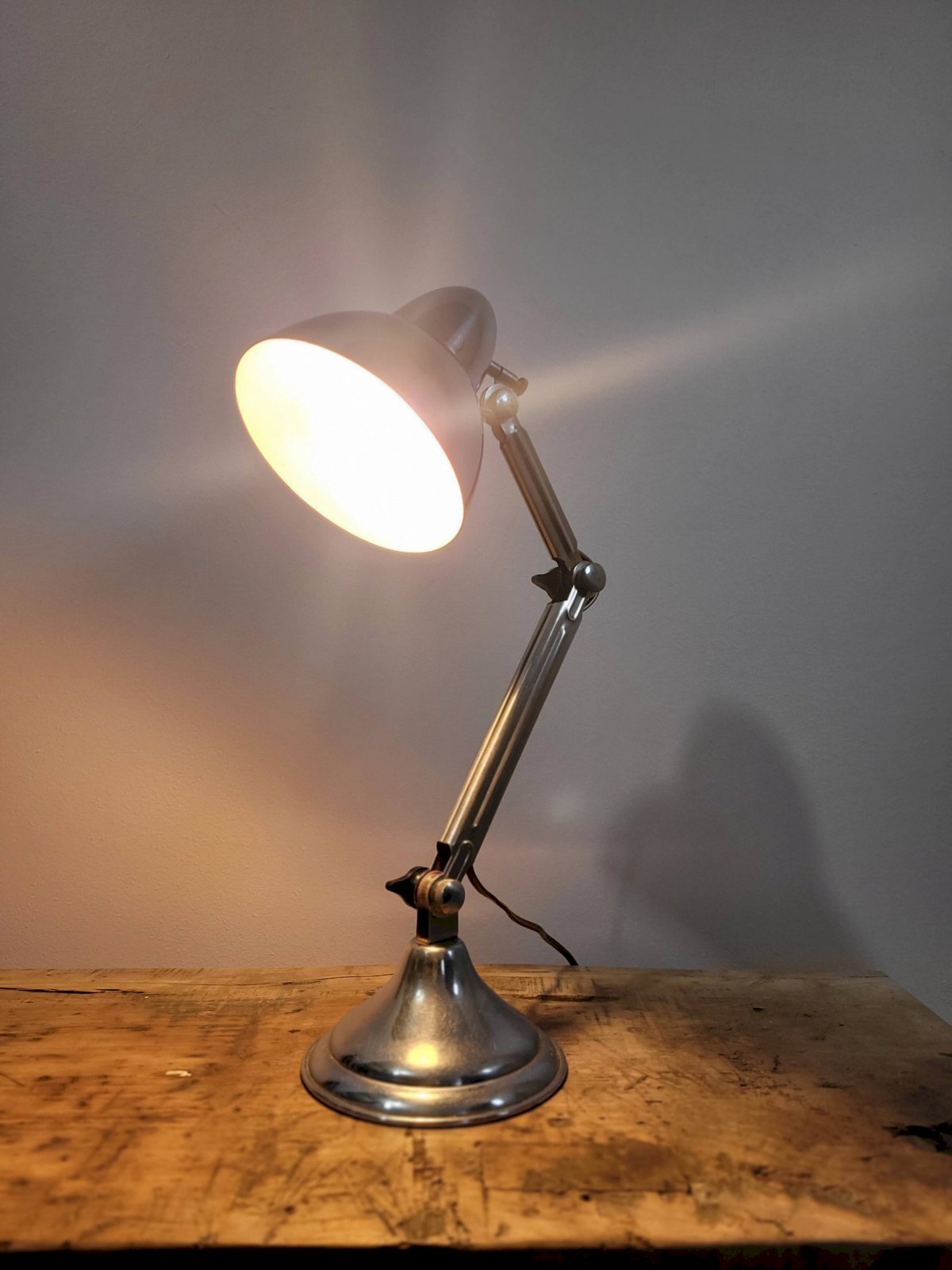 It can be imagined just as well in a workshop placed on a solid wood workbench, as on a shelf in a kitchen, or even in a bedroom adorning a bookcase. In very good overall condition, the chrome is impeccable (see photos).