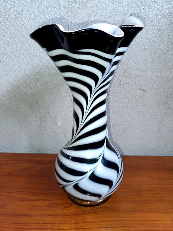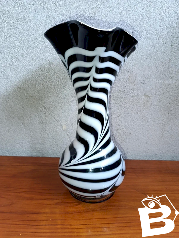 superb large black and white tissue vase in Murano style in good condition Black/White