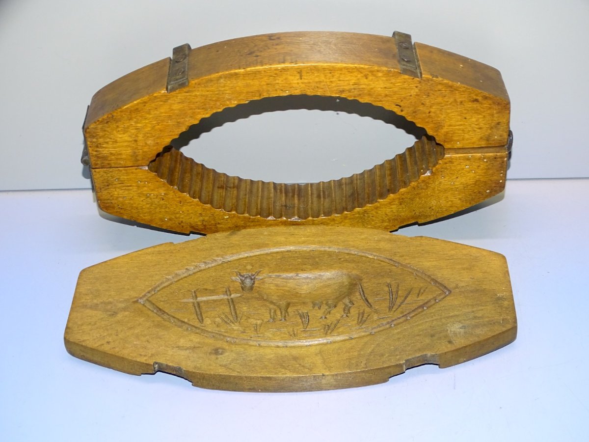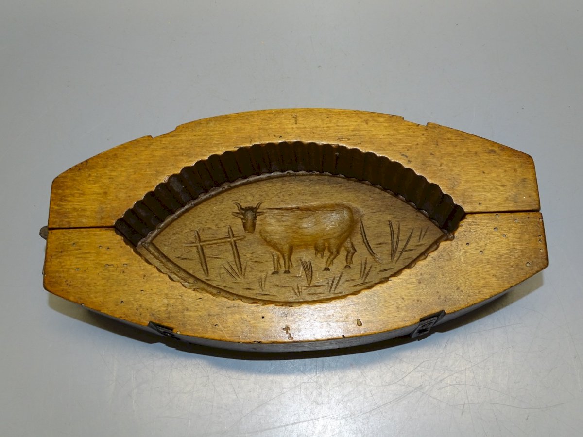 Beautiful old articulated wooden butter mold with a cow at the back - it has been waxed - with some small holes from old parasites - a hook on the back to hang it on the wall as decoration - (see photos) - In very good used condition - Ref: 1V251219/17 - 27 x 13 cm - Height 5.8 cm - Weight 0.753 kg - For any questions: SHIPPING POSSIBLE VIA MONDIAL RELAY or COLISSIMO upon request VERY GOOD PACKAGING GUARANTEED THANK YOU for CAREFULLY LOOKING AT ALL the PHOTOS as THEY ARE AN INTEGRAL PART of the DESCRIPTION and ALLOW YOU TO SEE the ITEM AS BEST AS POSSIBLE with ITS SMALL POSSIBLE DEFECTS - Condition: Used: Item that has been used. Please refer to the seller's description for more details... Used: Item that has been used. any possible imperfections.