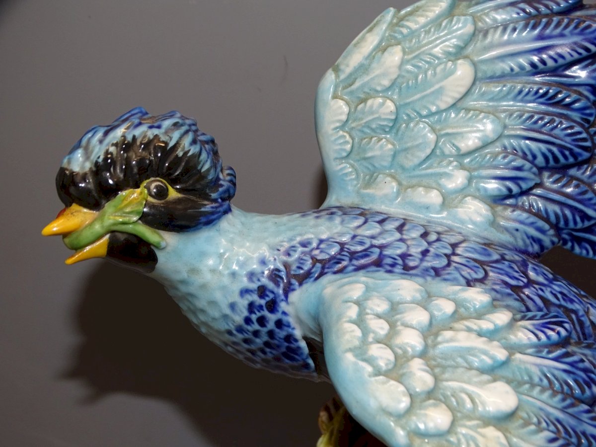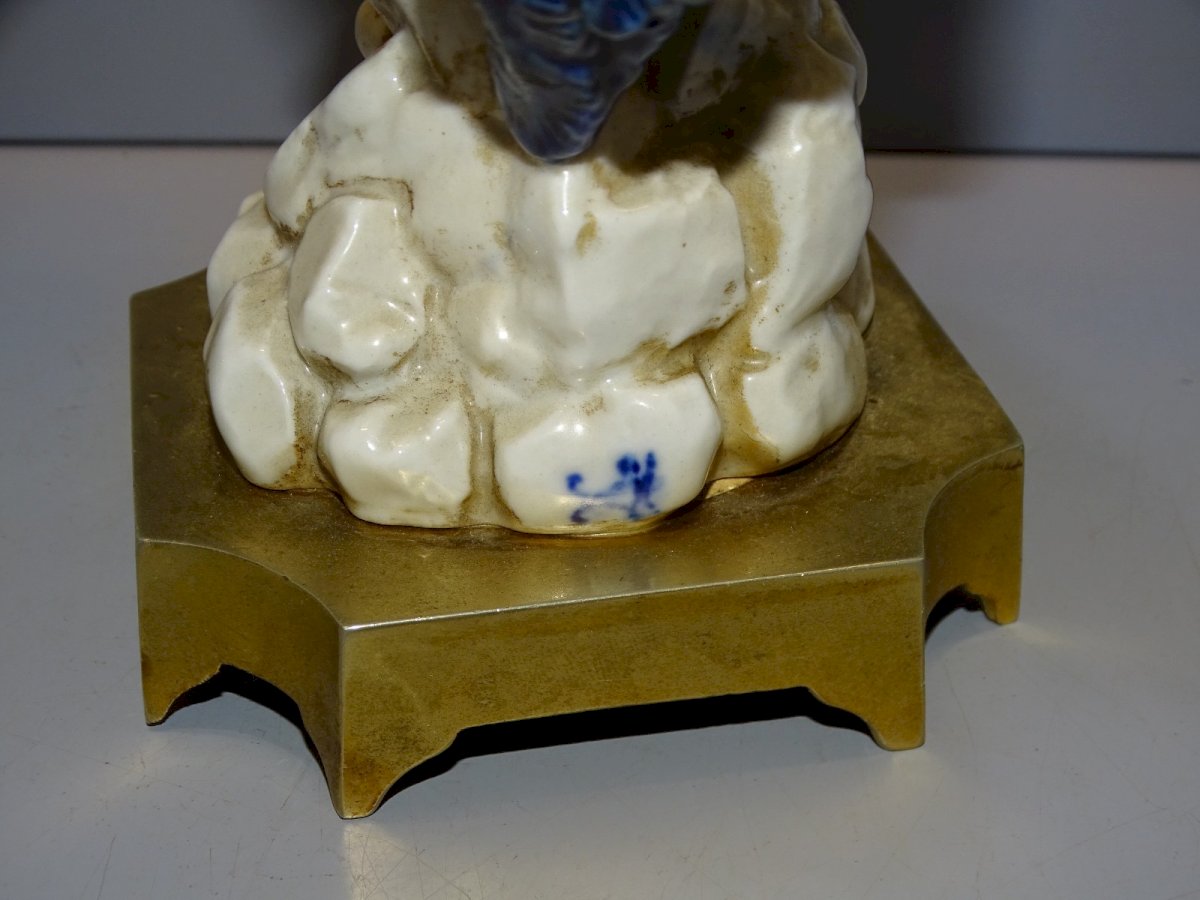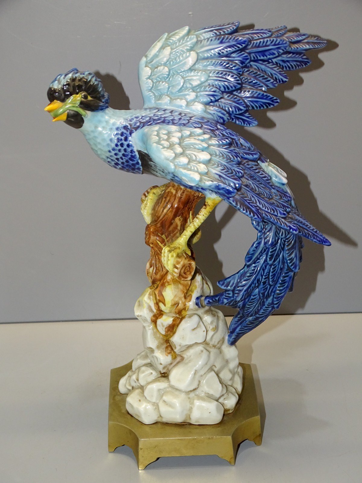 SUPERB LYRE BIRD CERAMIC ON BRASS BASE Signed Factory to be defined D