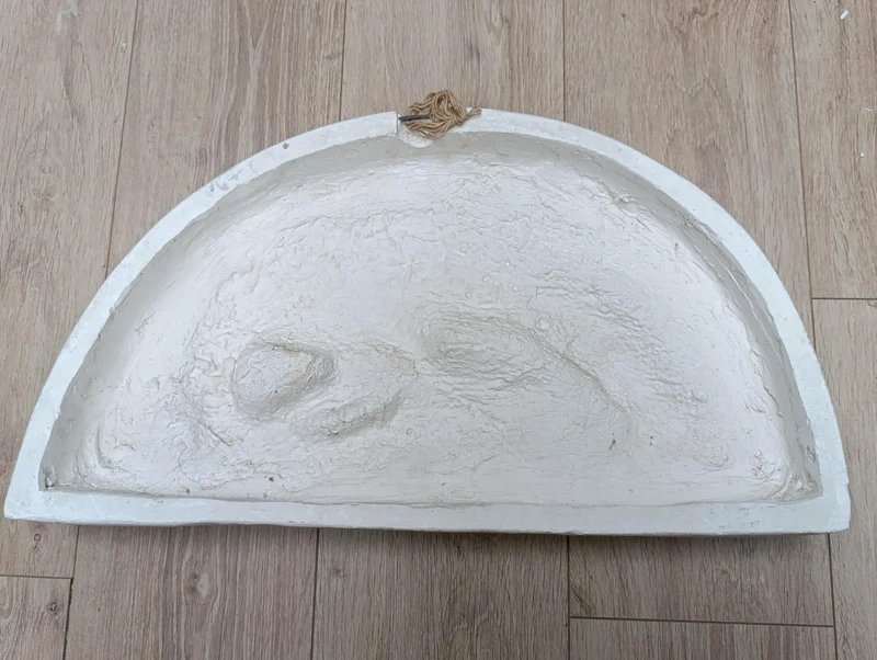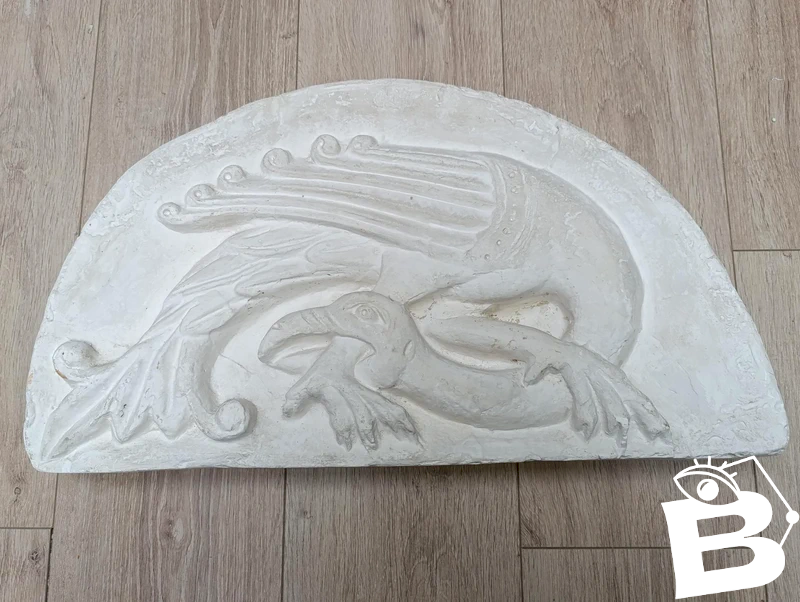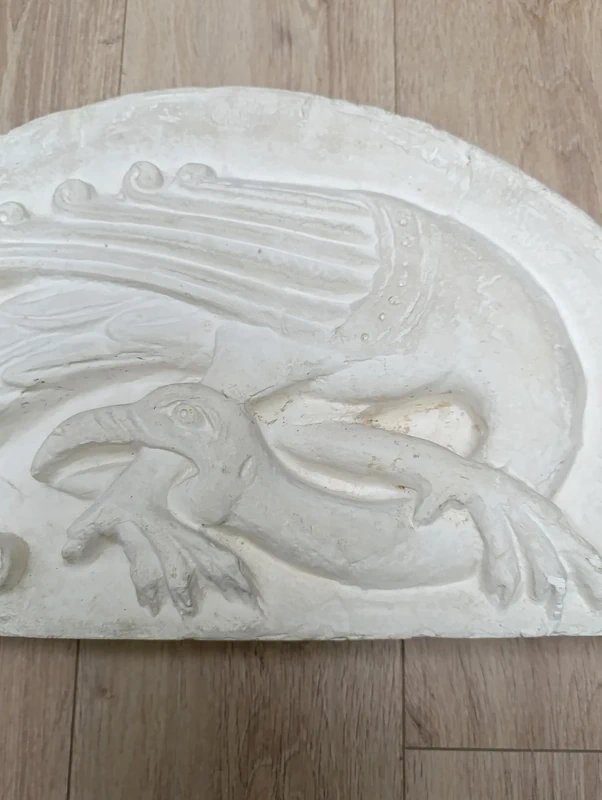 superb plaster reproduction of a chimeric bird biting its foot from Poitiers 12th century in good condition uncommon model length 57cm x 31cm thickness 7cm normal wear and patina from time and some small缺losses (to be confirmed as they could be original)