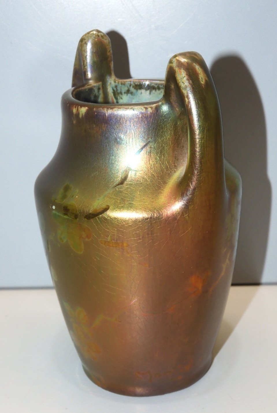 Beautiful little vase signed Montières with an iridescent color that changes depending on its exposure - with small flowers (photos) in excellent used condition, found in an attic - Ref. 1V250703/5 Height 12.2 cm Length 8.1 cm Top Diameter 4.9 cm Bottom Diameter 4.8 cm - Weight 266 g To contact me, my email address: SHIPPING POSSIBLE VIA MONDIAL RELAY or COLISSIMO upon request VERY GOOD PACKAGING GUARANTEED THANK YOU for CAREFULLY VIEWING ALL the PHOTOS as THEY ARE AN INTEGRAL PART of the DESCRIPTION and ALLOW YOU TO SEE the ITEM AT ITS BEST with ITS SMALL POSSIBLE DEFECTS -
