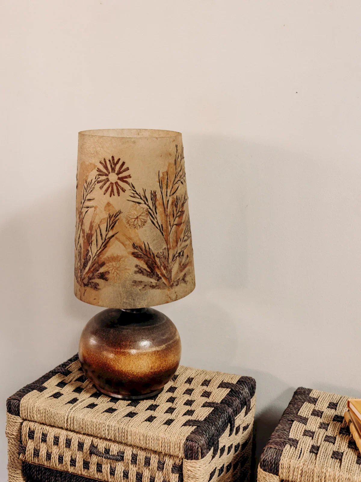 Add a bright and elegant touch with this table lamp featuring a round ceramic base and a pearlescent shade. Its well-proportioned base and tall height provide a subtle presence, making it ideal for placement on a console or bedside table. The pearlescent veil diffuses a soft, enveloping light that creates a warm and cozy atmosphere. The smooth ceramic finish adds a tactile and contemporary note. Height: 64 cm Diameter of the base: 25 cm Condition: Used item. The item shows some signs of superficial wear... Used item. The item shows some signs of superficial wear, fully operational and functioning correctly. It may be a demonstration model or an item returned to the store after a short period of use. Any imperfections. Brand: Debongout Type: Thrifted product Style: Country Material: Ceramic, Parchment Vintage: Yes