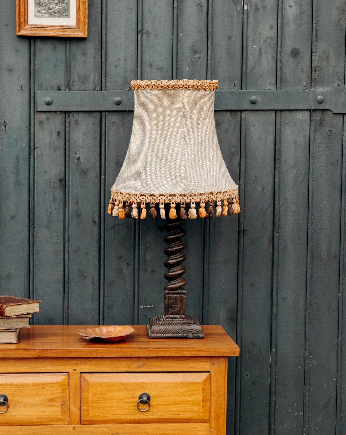 Bring a touch of warmth and creativity to your interior with the orange wooden pompom lamp. This unique piece combines elegance and originality, thanks to its natural wood design accentuated by colorful pompoms. Ideal for the living room or bedroom, it emits a soft and warm light, creating a cozy atmosphere. Its warm and playful style makes it an essential decorative accessory to brighten up your evenings. Height: 63.5 cm Diameter: 31 cm Condition: Used item. Item has been used and shows some signs of superficial wear...Used item. Item has been used and shows some signs of superficial wear, fully operational and functioning correctly. It may be a demonstration model or an item returned to the store after a short period of use. Any imperfections. Brand: Debongout Type: Vintage find Style: Country Material: Wood Vintage: Yes