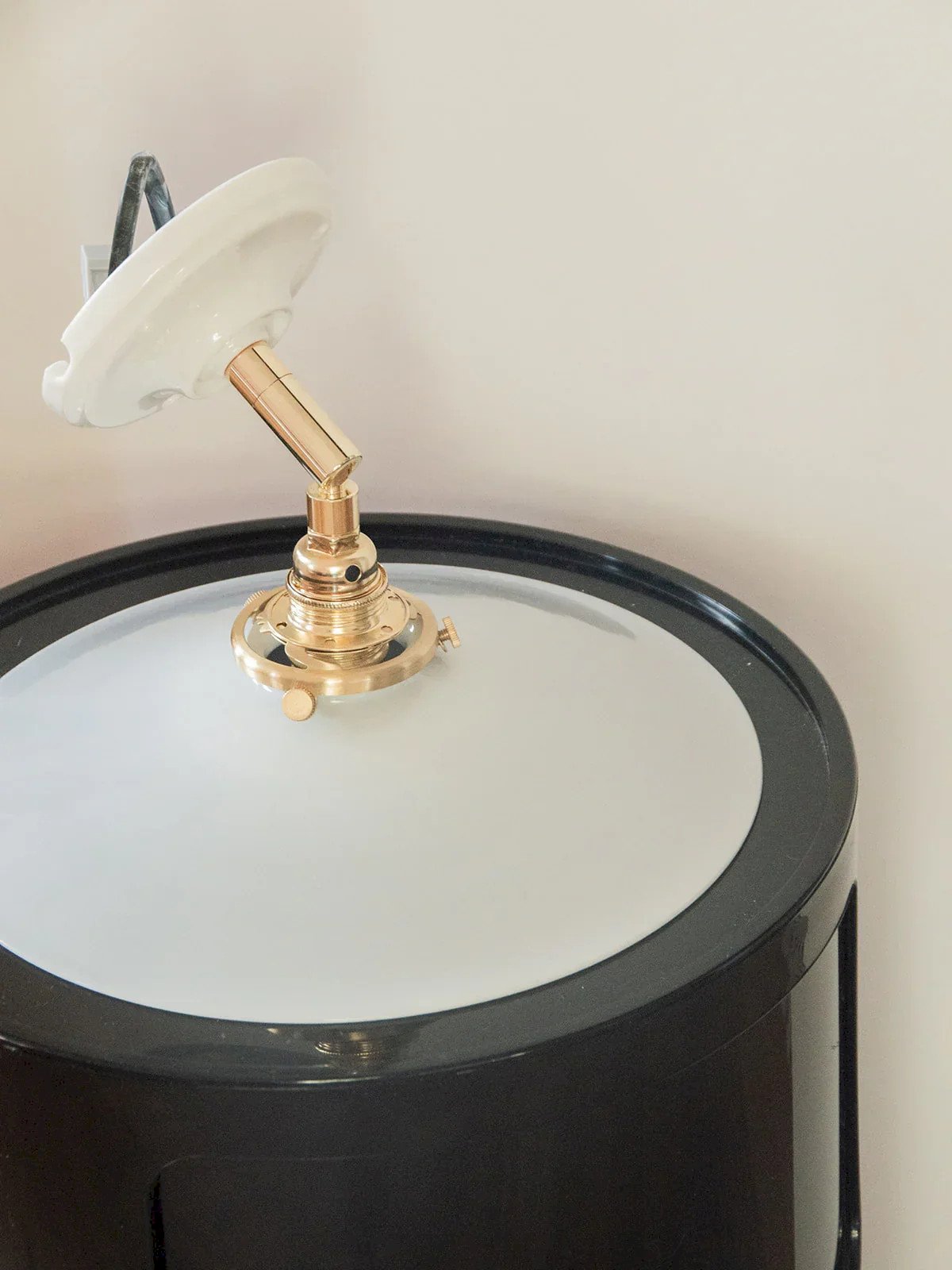 Suzette is the wall-mounted version of our Paulette! These wall lamps are made up of a vintage glass globe. The small vintage and sophisticated touch is perfect for styling a bedroom or a living room. Each upcycled wall light is unique, hand-assembled in France on a gold arm and a porcelain base that provides a refined finish. The E14 socket and connection wagon ensure a simple and secure installation. Compliant with CE standards, these wall lights are perfect for illuminating your space with style. We love this Suzette lamp for its white opaline tulip globe. Sold without a bulb. Web exclusive, the meeting will be at your home! Width: 25 cm Height: 25 cm Depth: 25 cm Condition: Used: Item has been used. Item shows some superficial signs of wear... Used: Item has been used. Item shows some superficial signs of wear, fully operational and functioning correctly. It may be a demonstration model or an item returned to the store after a short period of use. any potential imperfections. Brand: Debongout Type: Vintage product Style: Country Material: Glass Vintage: Yes