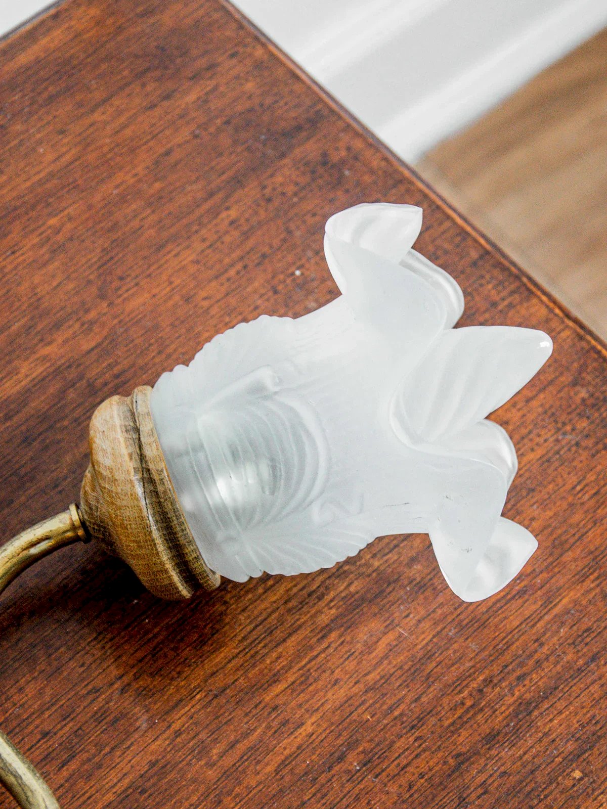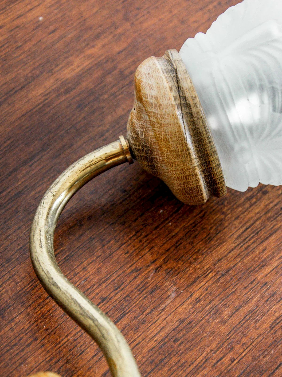 Discover this pair of opaline sconces, elegantly paired with a wooden and golden metal structure. They emit a soft and warm light, ideal for creating a cozy atmosphere. Their timeless design easily fits into all interior styles. Perfect for enhancing a living corner or a bedroom with charm and discretion. Length: 13.5 cm Height: 19 cm Depth: 27 cm Condition: Used: Item that has been used. Item showing some signs of superficial wear, fully operational and functioning correctly. It may be a demonstration model or an item returned to the store after a short period of use. any potential imperfections. Brand: Debongout Type: Thrifted product Style: Country Material: Opaline, Wood, Metal Vintage: Yes
