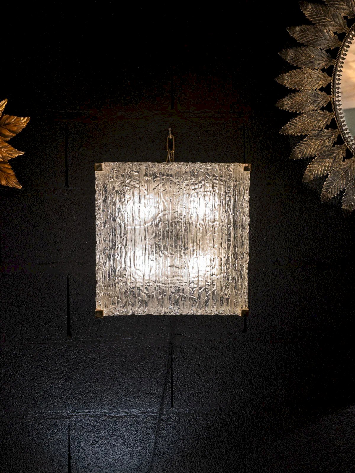 Add a retro touch to your interior with this 1970s resin wall light, embellished with elegant brass angles. It provides a soft and warm light, ideal for creating a friendly atmosphere. Its vintage design blends perfectly into contemporary or retro decor, making this piece a must-have for style enthusiasts. It promises to enhance your space with charm and character. Length: 40 cm Width: 40 cm Condition: Used: Item that has been used. Item showing some superficial signs of wear, fully operational and functioning correctly. It may be a demonstration model or an item returned to the store after a short period of use. Possible imperfections. Brand: Debongout Type: Thrifted product Vintage: Yes Style: Country