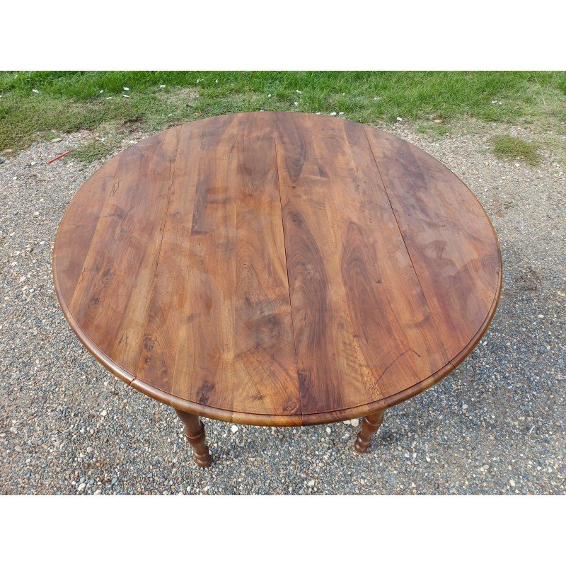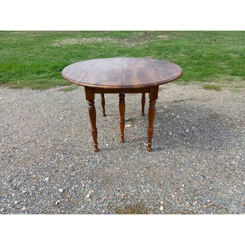 Table 6 Legs Opening in Walnut 19th century, Height: 76 cm, Open: 272 cm, Diameter: 120 cm, Closed flaps: 69 cm on 120 cm, does not have extensions, very good condition.