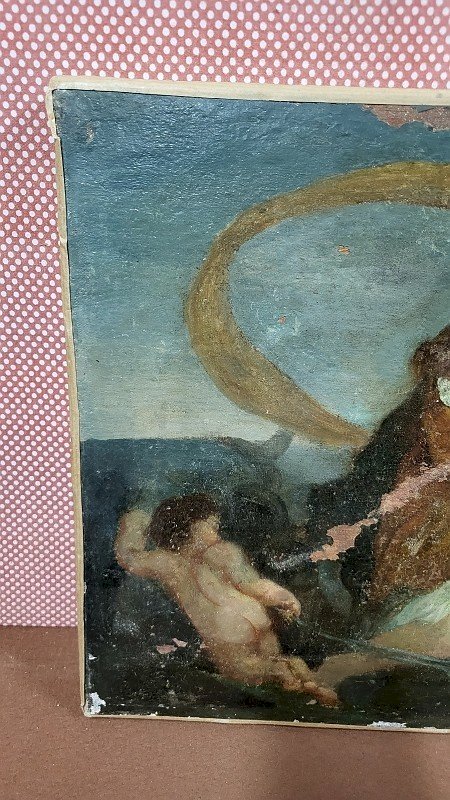 beautiful old painting to restore French school from the late 18th or early 19th century restoration is to be expected please look carefully at the photos before buying the frame does not match the canvas it is more recent it measures 49.5 cm wide by 37 cm high Type:Oil Characteristics:On canvas Theme:Character