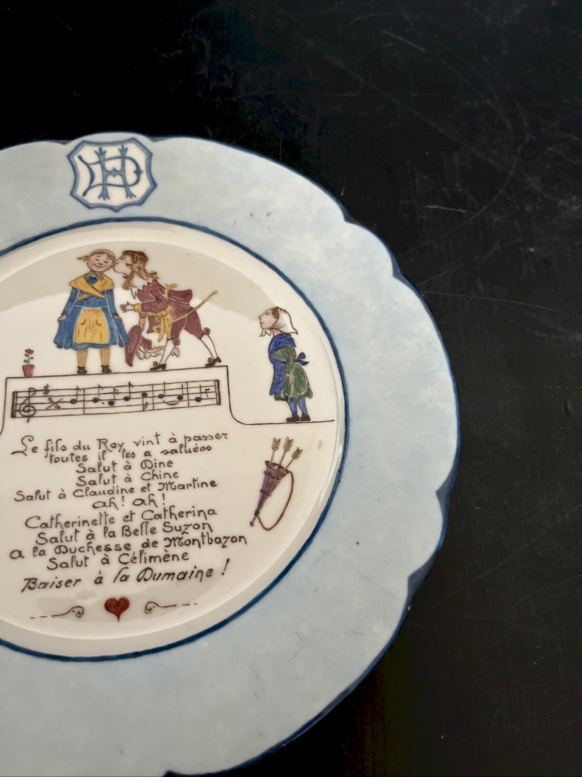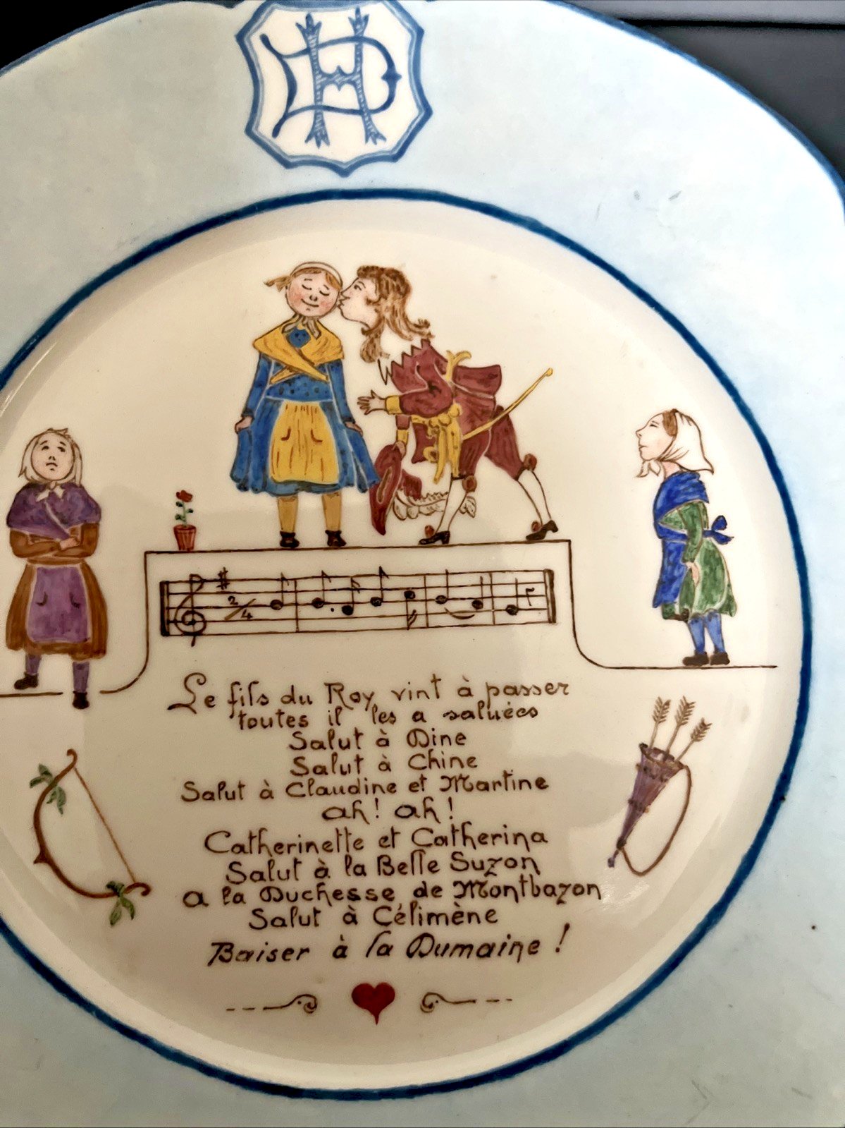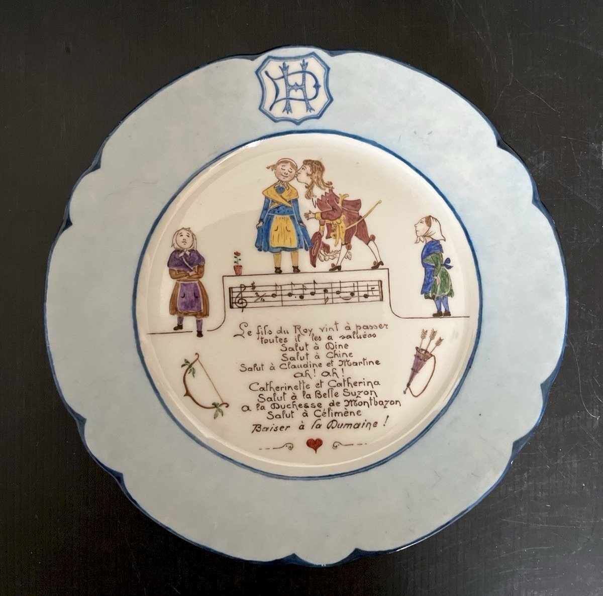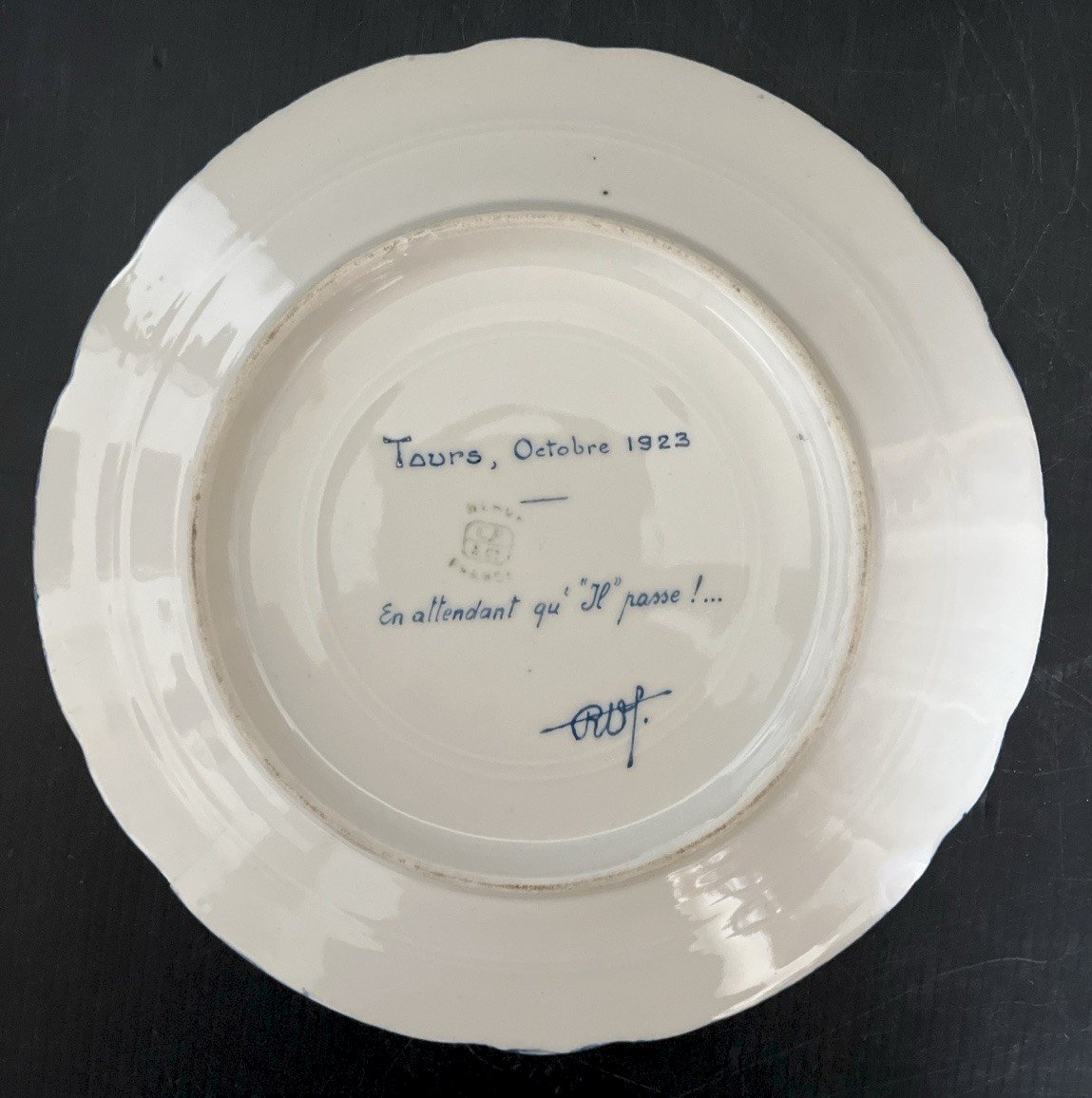 Beautiful painting work on this humorous porcelain plate with a sung decoration dated Tours 1923. There is a chip on the invisible reverse side and a small chip on the edge (see last photos). Diameter 21 cm, height 2.50 cm, weight 400 gr. Please look at the above photos, which will also serve as a description. Careful and secure packaging via Mondial Relay or with the post to be chosen at the time of purchase. Thank you all and happy hunting in my shop. Returns accepted within 14 days from receipt, return in its original packaging, in its initial condition, no refund for items returned broken or lost by the carrier, return shipping at the buyer's expense. Don't hesitate to add my shop to your favorites! Type: Showcase item, Decorative Origin: France Subtype: Plate Country of origin: France Material: Porcelain