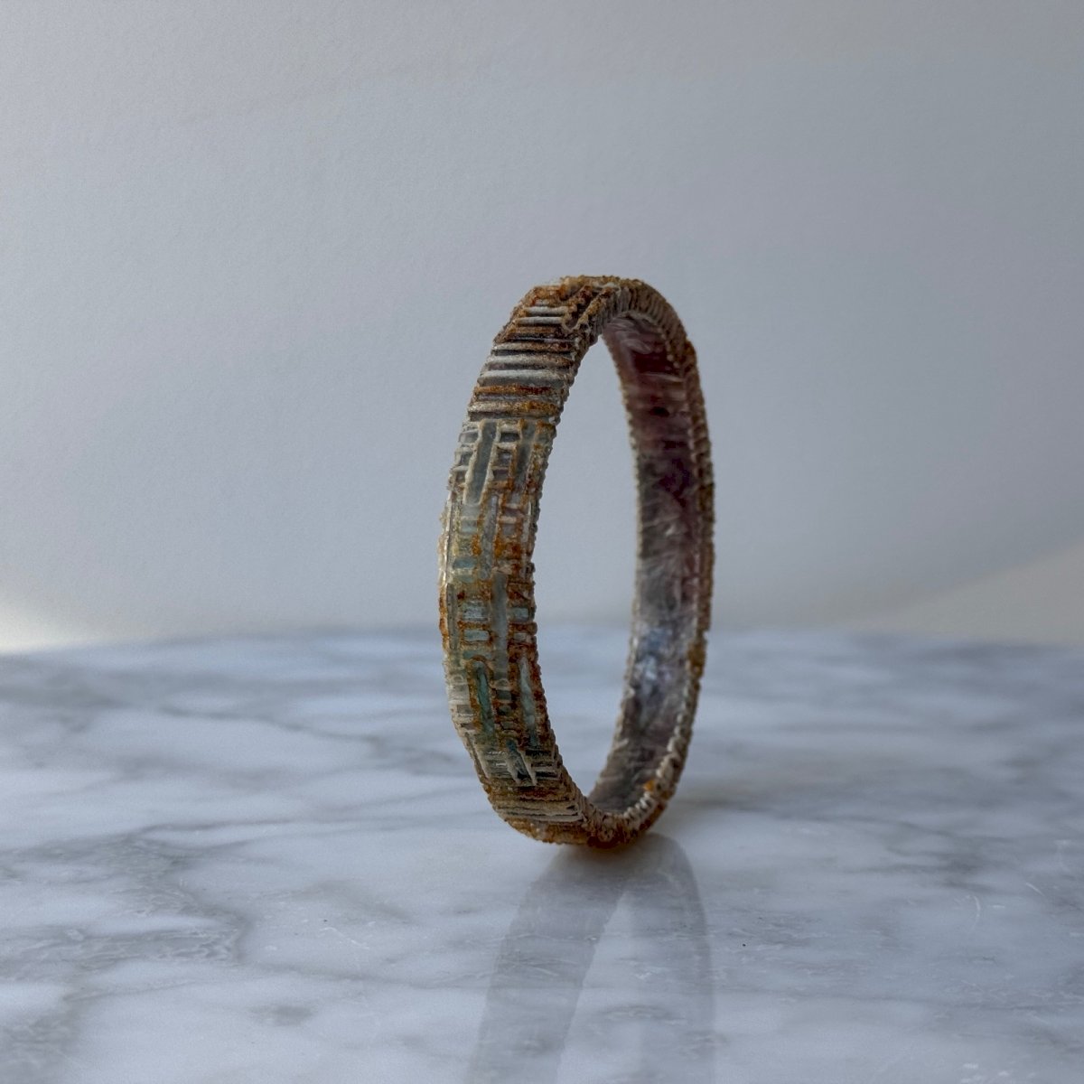 Bracelet in Talosel XXe M3715 This Talosel bracelet is signed "Jeanine" on the inside. It has a geometric design. The whole is in the style of Line Vautrin. It is a handmade piece. As for the condition, note that the bracelet is barely circular. Our photos allow you to appreciate the quality of the item. Please be sure to examine the photos in detail. Do not hesitate to zoom in. The photos are an integral part of the description. Dimensions: Height: 1.1 cm External diameter: 7.2 cm Internal diameter: 6.4 cm P: 1642260 I remain at your disposal for any questions. Condition: Used Item that has been worn. Any imperfections. Material: Talosel
