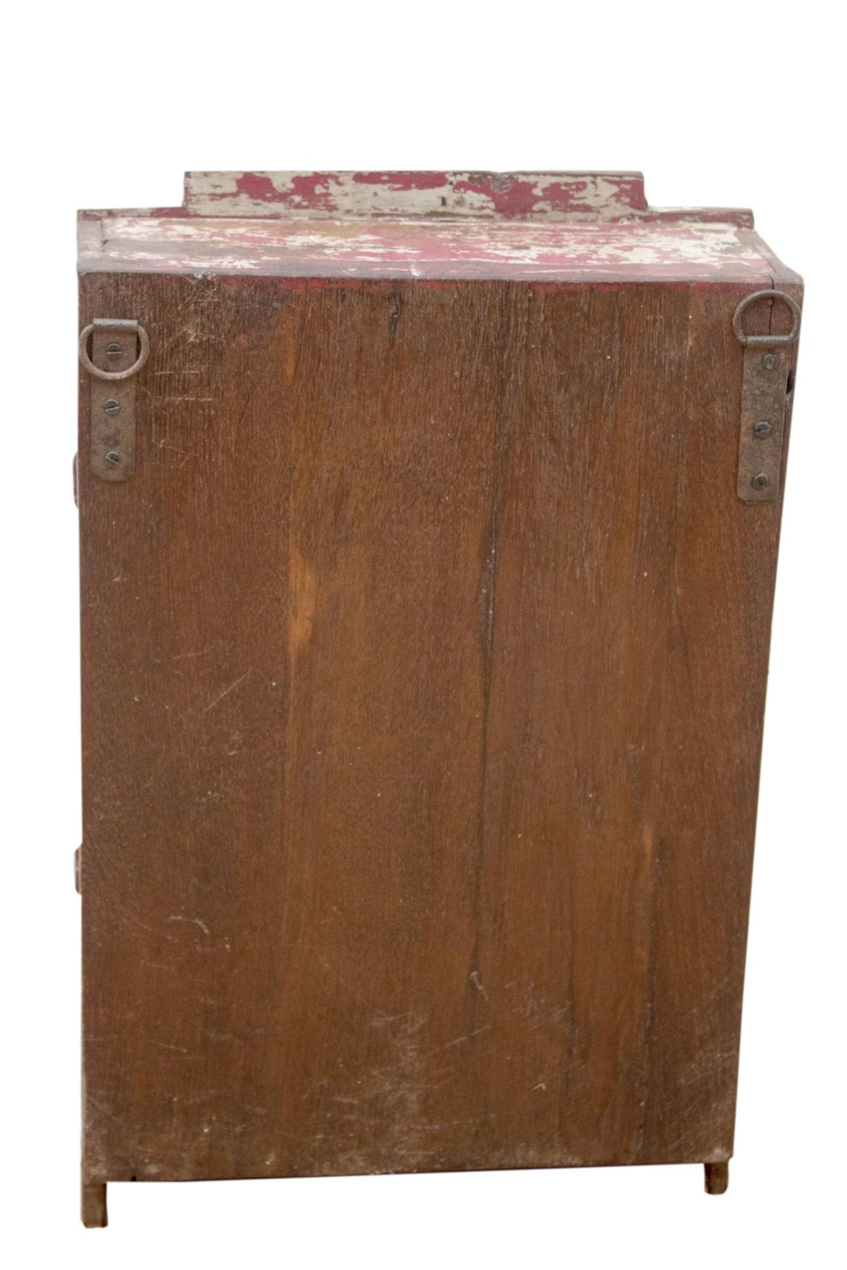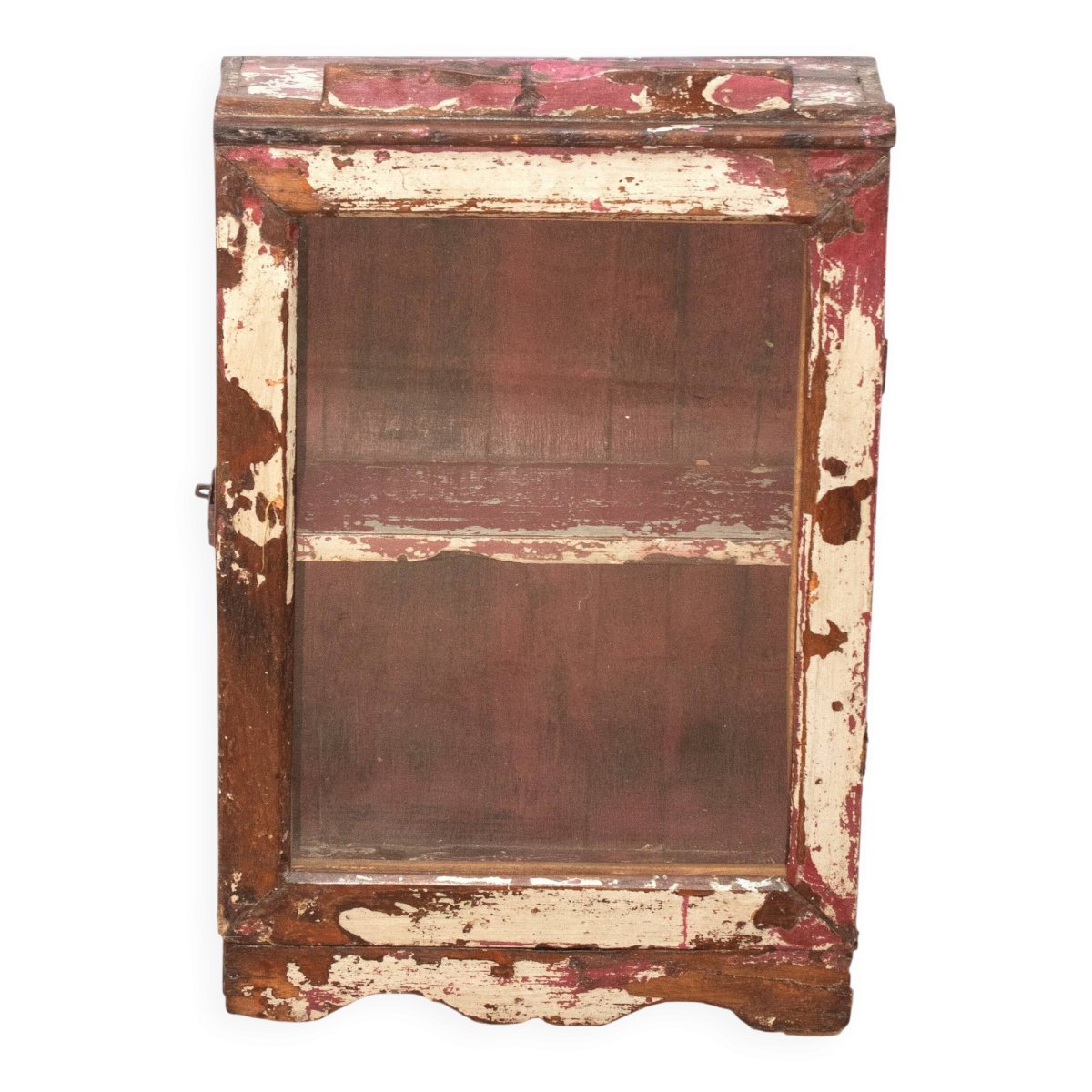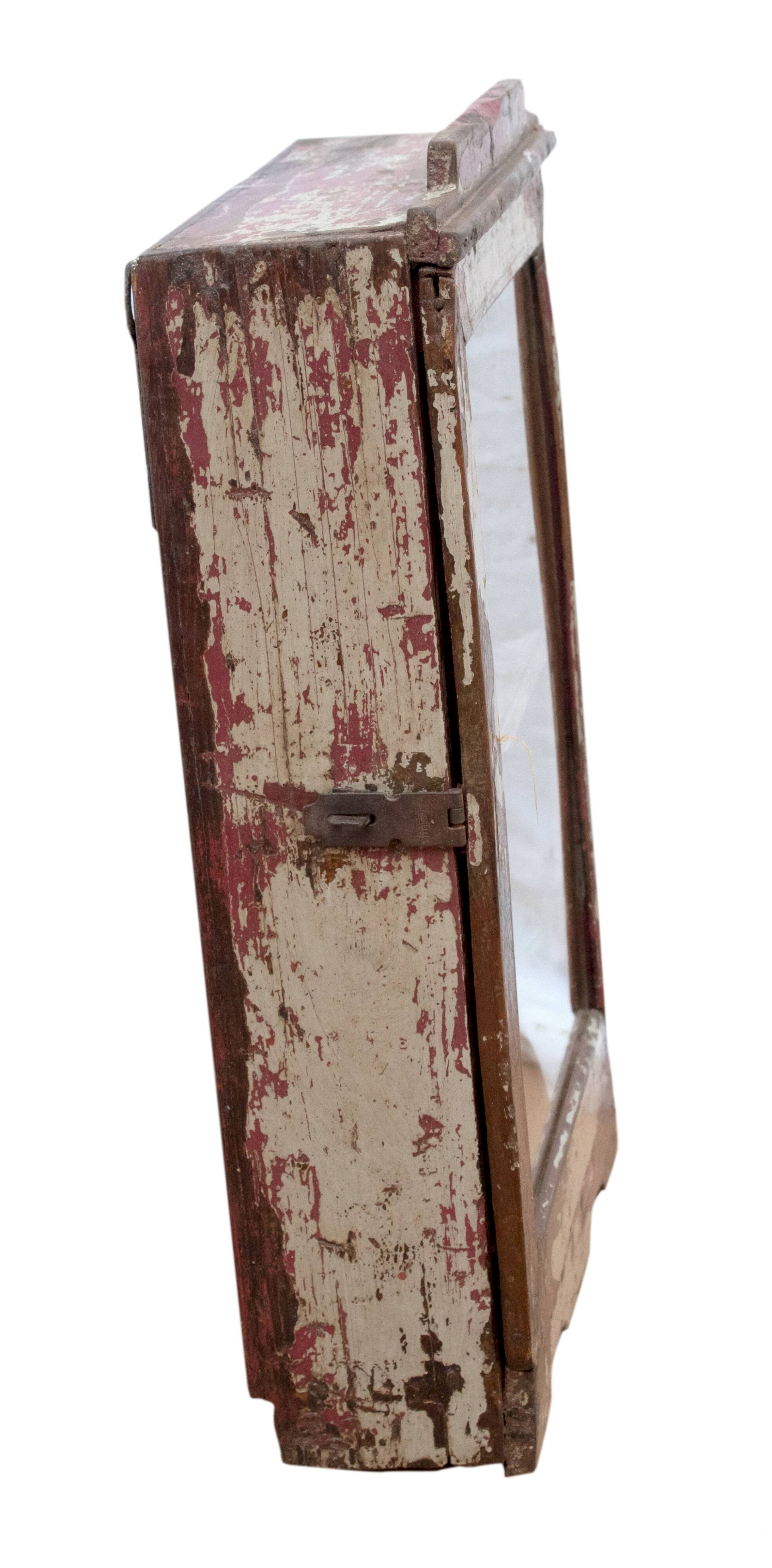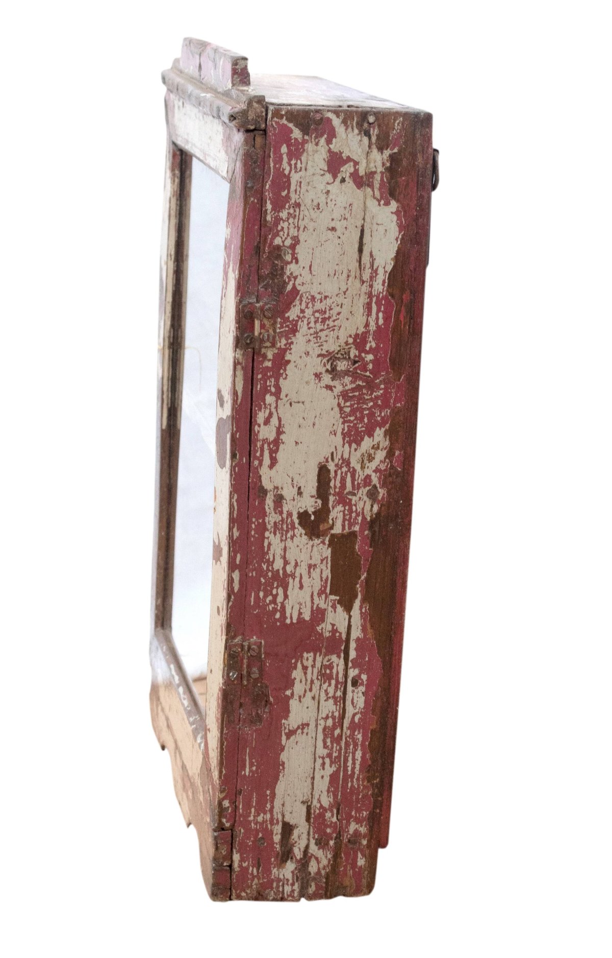 Teak wall display case / original off-white-red patina / 33 x 12 x 52 cm - 8 kg / 2 interior compartments