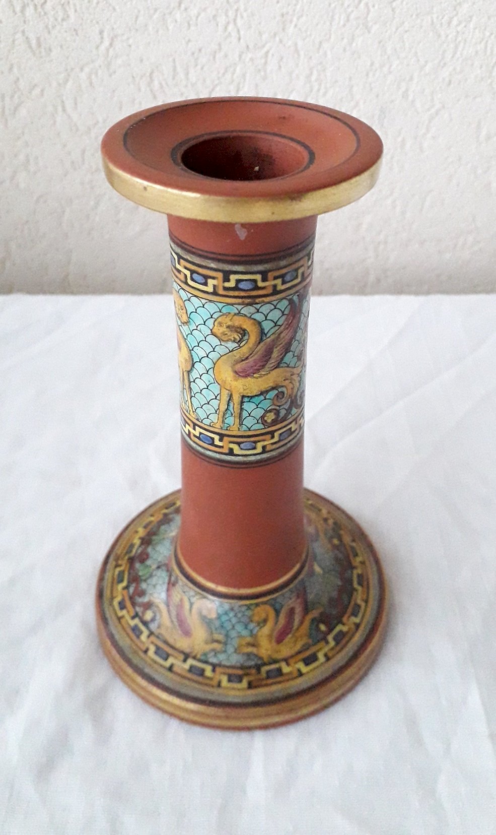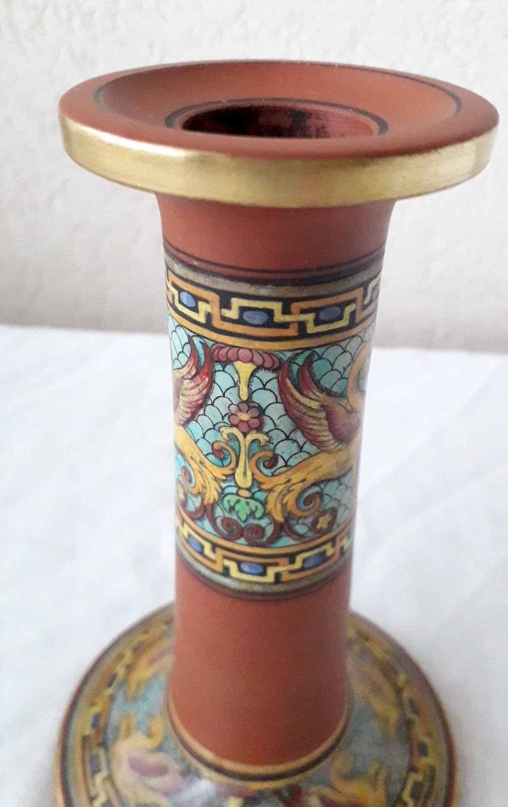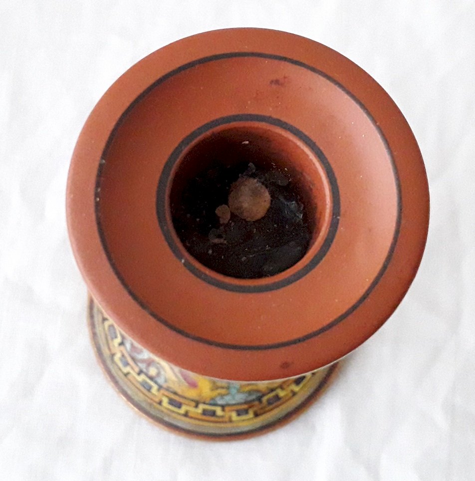 Ceramic or terracotta candlestick, antique decor, without mark or signature. Very good overall condition, no breaks. Dimensions: height 13 cm, base diameter 8 cm. Weight 0.3 kg. Feel free to contact me for any additional information and/or to make your offers. See my other items for sale.
