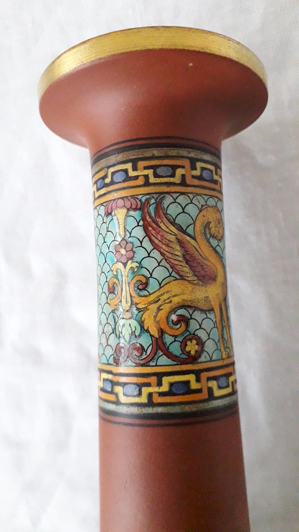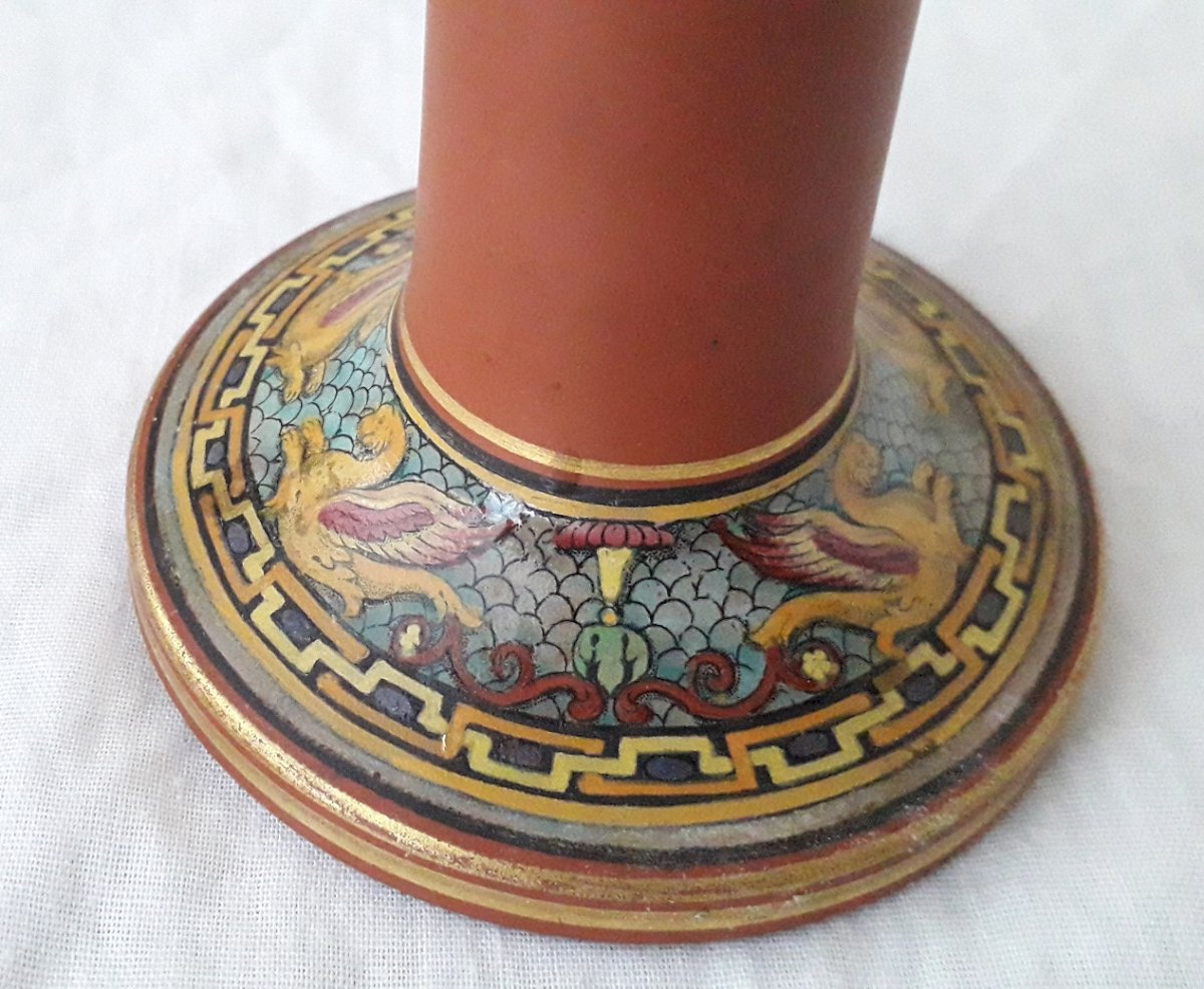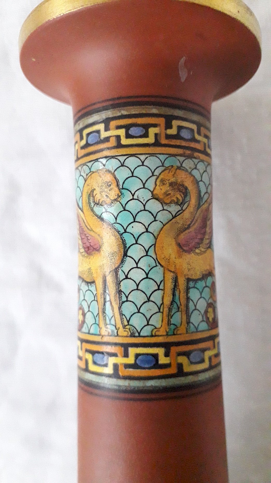 Ceramic or terracotta candlestick, antique decor, without mark or signature. Very good overall condition, no breaks. Dimensions: height 13 cm, base diameter 8 cm. Weight 0.3 kg. Feel free to contact me for any additional information and/or to make your offers. See my other items for sale.