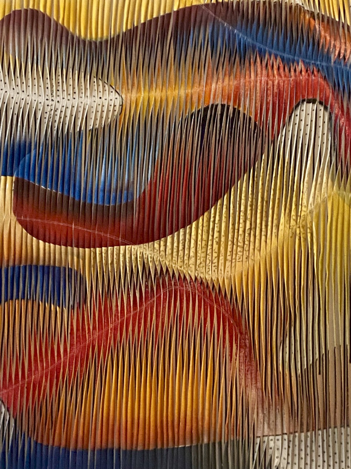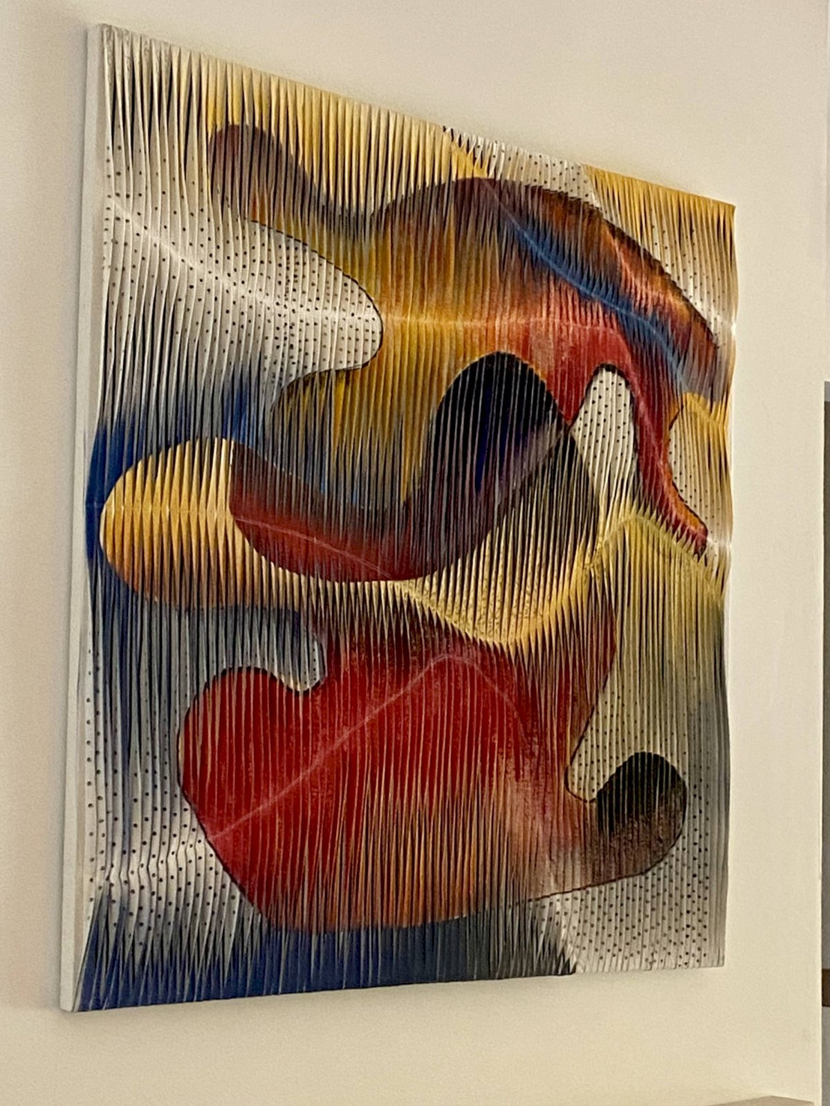 The Dance of Colors is a textile sculpture-painting where relief and movement emerge from the magic of folding.