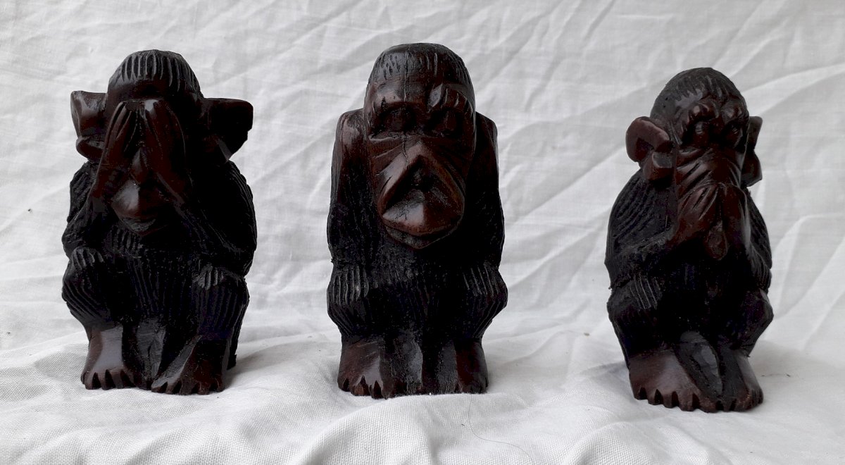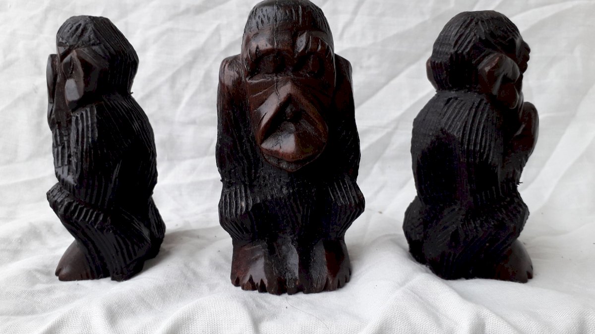 The 3 wooden carved monkeys of wisdom, a lucky charm. "See no evil, hear no evil, speak no evil." General good condition, no breakage. Dimensions: height approximately 10 cm. Total weight 0.4 kg. Feel free to contact us for any additional information. See the other items from this seller.