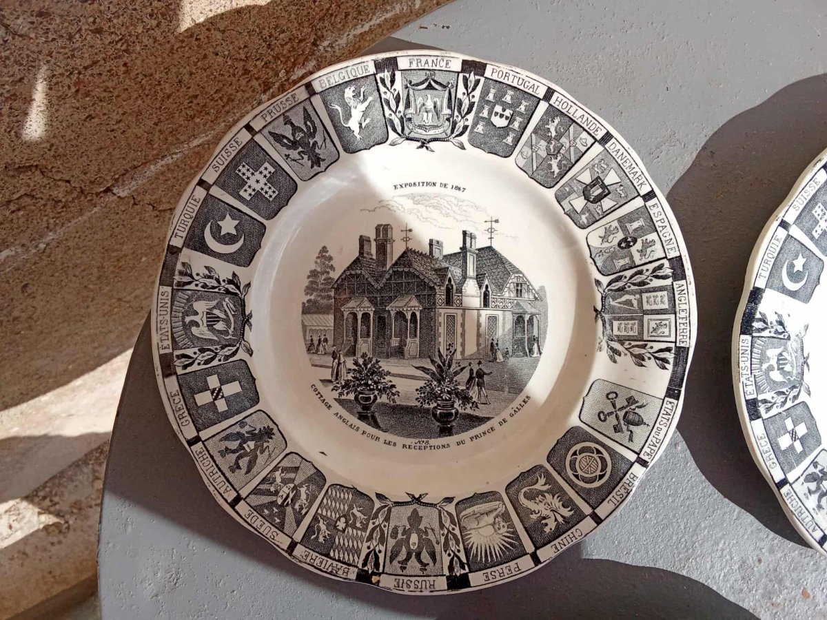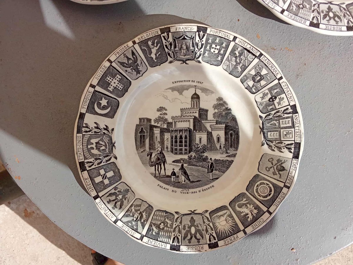 Commemorative plates in fine earthenware, published on the occasion of the 1867 World's Fair. Work from the famous factory of Creil and Montereau, finely printed decoration, overall good condition.